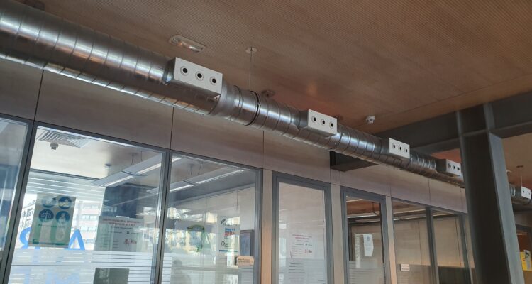Esta renovación integral ha incluido la instalación de una tercera bomba de calor aire-agua, la sustitución de las cuatro unidades de tratamiento de aire (UTA) existentes por tres nuevas que permiten controlar todas las variables del aire (ventilación, calidad, temperatura y humedad), la instalación y sustitución de los dispositivos de ventilación de suelo y techo, así como de los conductos y difusores. También se han renovado las luminarias de la biblioteca, aulas, zonas de estudio y escaleras por elementos led de bajo consumo aptos para ser conectados a un futuro sistema de control centralizado.