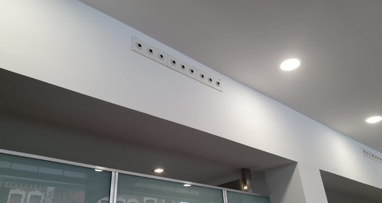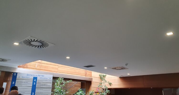 Estas actuaciones han llevado aparejada una obra civil consistente en la demolición de los falsos techos de los vestíbulos de ascensor en las diferentes plantas y patinillo de ventilación, el falso techo de la Oficina de Atención a la Ciudadanía Línea Madrid y los de las salas de la planta tercera.