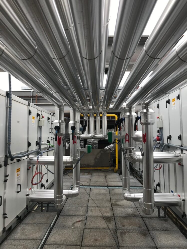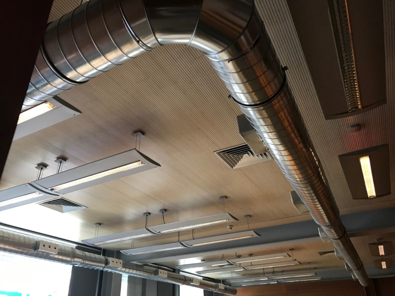 Esta renovación integral ha incluido la instalación de una tercera bomba de calor aire-agua, la sustitución de las cuatro unidades de tratamiento de aire (UTA) existentes por tres nuevas que permiten controlar todas las variables del aire (ventilación, calidad, temperatura y humedad), la instalación y sustitución de los dispositivos de ventilación de suelo y techo, así como de los conductos y difusores. También se han renovado las luminarias de la biblioteca, aulas, zonas de estudio y escaleras por elementos led de bajo consumo aptos para ser conectados a un futuro sistema de control centralizado.