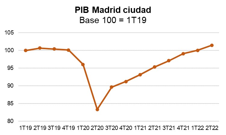 Estos buenos datos de empleo en la ciudad están en línea con otros indicadores económicos. Según el informe de la contabilidad municipal, la ciudad de Madrid ya ha recuperado en el segundo trimestre de 2022 el PIB prepandemia.