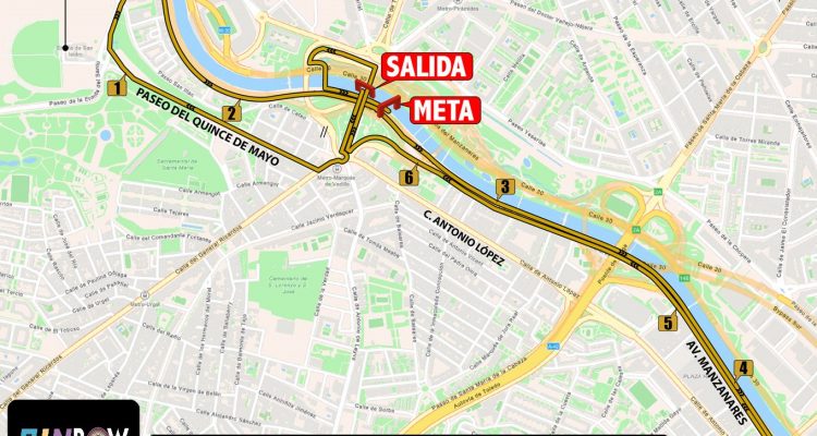 A continuación, siguiendo por la avenida del Manzanares, el recorrido discurrirá por las calles de Orgaz, Antonio López, Baleares, Condes de Barcelona, Antonio Leyva y Vía Lusitana hasta la avenida de la Peseta y las calles Valle de Boi, Casatejada y Camino de las Cruces. La carrera continúa por Joaquín Turina, Eugenia de Montijo, Patilla, Sombra, plaza de Carabanchel, Blasón, General Ricardos, Oca, Vía Carpetana, Albentosa, Vía Carpetana, paseo de la Ermita del Santo, travesía de Iván de Vargas para entrar por Madrid Rio hasta la avenida del Manzanares y llegar a la meta en el Puente de Toledo.