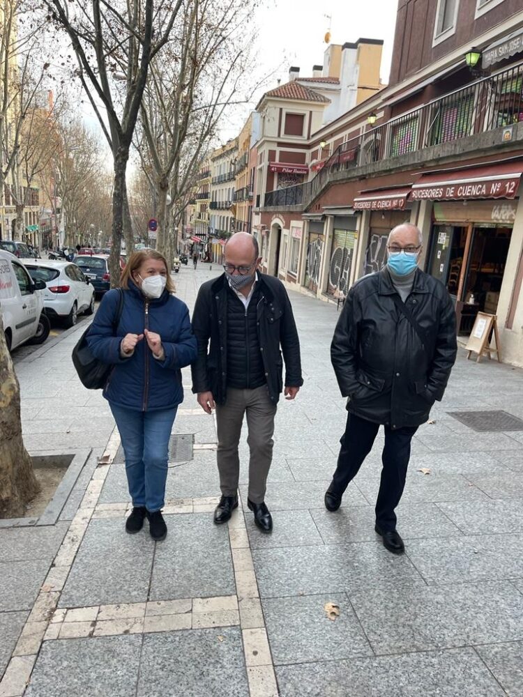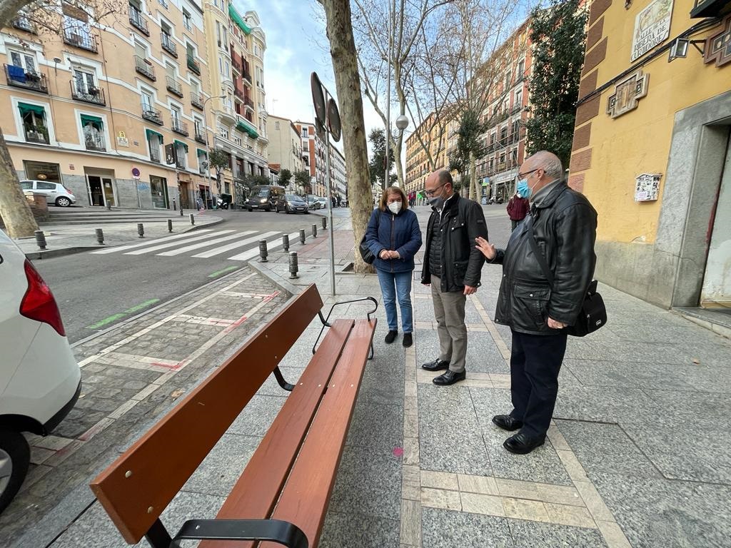 El concejal del distrito de Centro, José Fernández, acompañado de varios vecinos del barrio de Embajadores, ha recorrido esta tarde la calle Ribera de Curtidores, en donde, recientemente, el Ayuntamiento ha comenzado a instalar nuevo mobiliario urbano. Estas nuevas dotaciones incluyen la colocación de bancos, atendiendo así a una demanda histórica de los vecinos.
