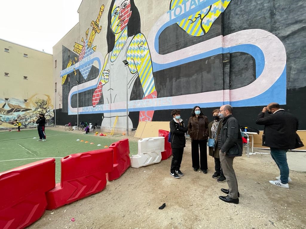 La visita al entorno del Rastro ha concluido en el Espacio Polivalente Embajadores, en el que entrenan a diario los diferentes equipos del Club Deportivo Elemental Los Dragones de Lavapiés, beneficiario de una subvención de la Junta Municipal de Centro desde el año pasado en el marco del proyecto inclusivo ‘Fútbol para la igualdad de género en el barrio de Embajadores’.
