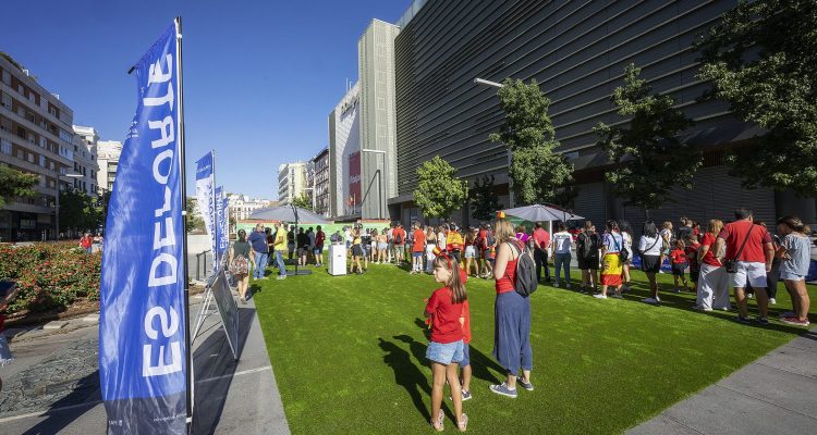 La delegada de Cultura, Turismo y Deporte, Marta Rivera de la Cruz, ha celebrado que “ya hay un ganador de la final que se juega este domingo, y es el deporte femenino español”, durante su visita a la FanZone instalada en el exterior del WiZink Center con motivo del evento organizado por el Ayuntamiento de Madrid, la Comunidad de Madrid, la Federación Española de Fútbol y el Consejo Superior de Deportes para que los madrileños puedan ver en cuatro pantallas gigantes dentro del recinto multiusos la final de la Copa Mundial que disputan las selecciones femeninas de fútbol de España e Inglaterra.