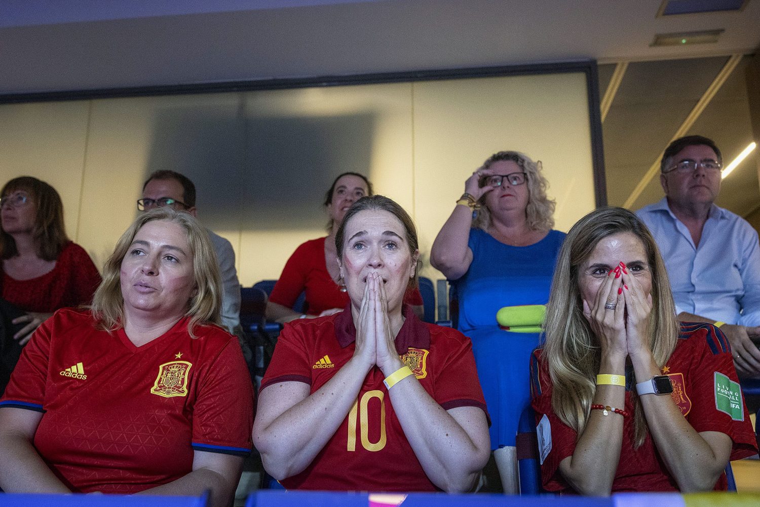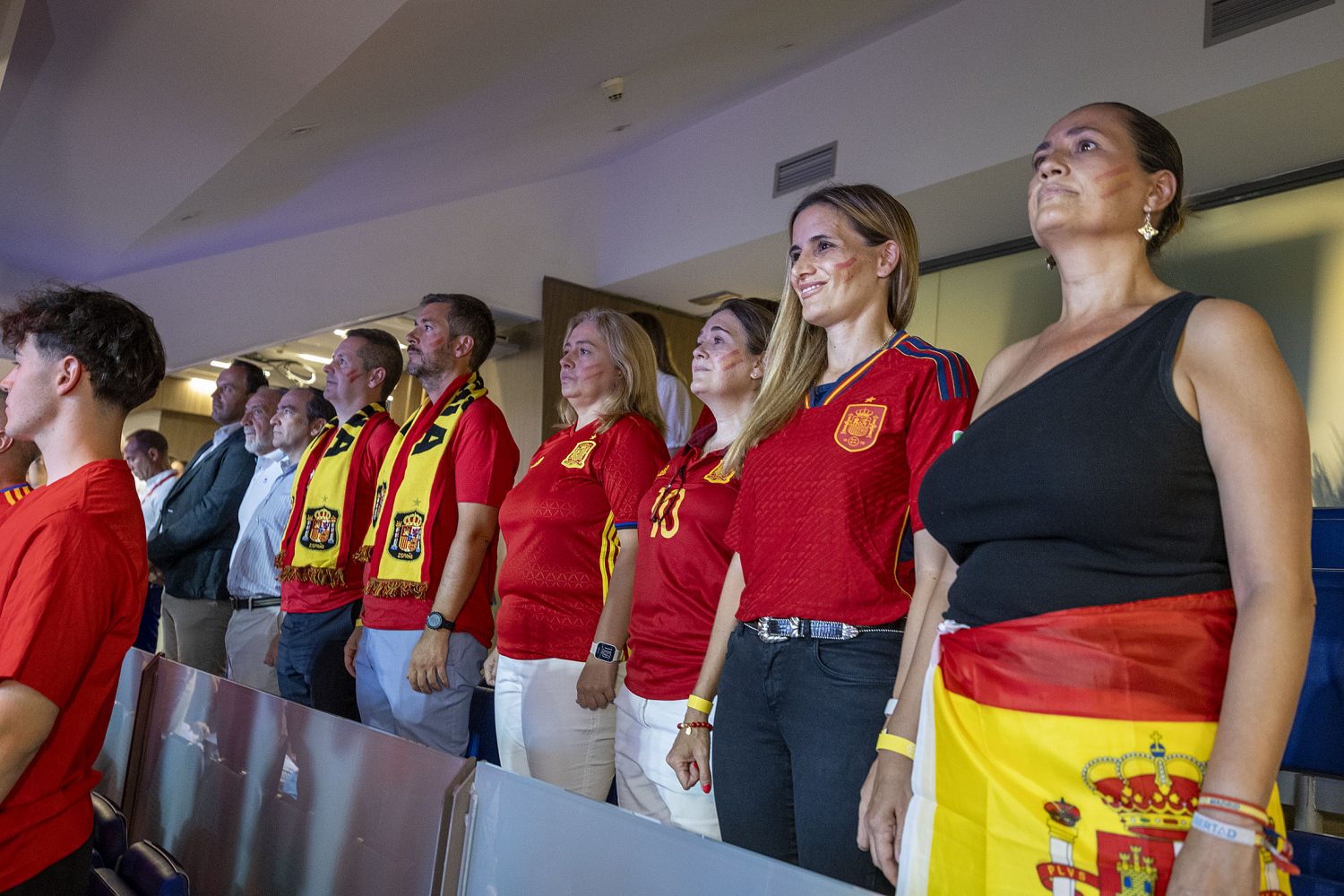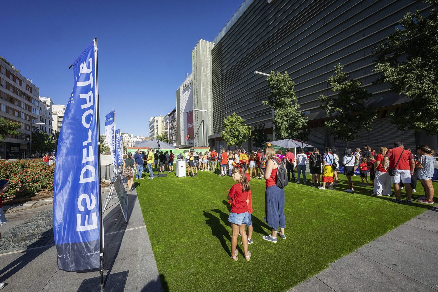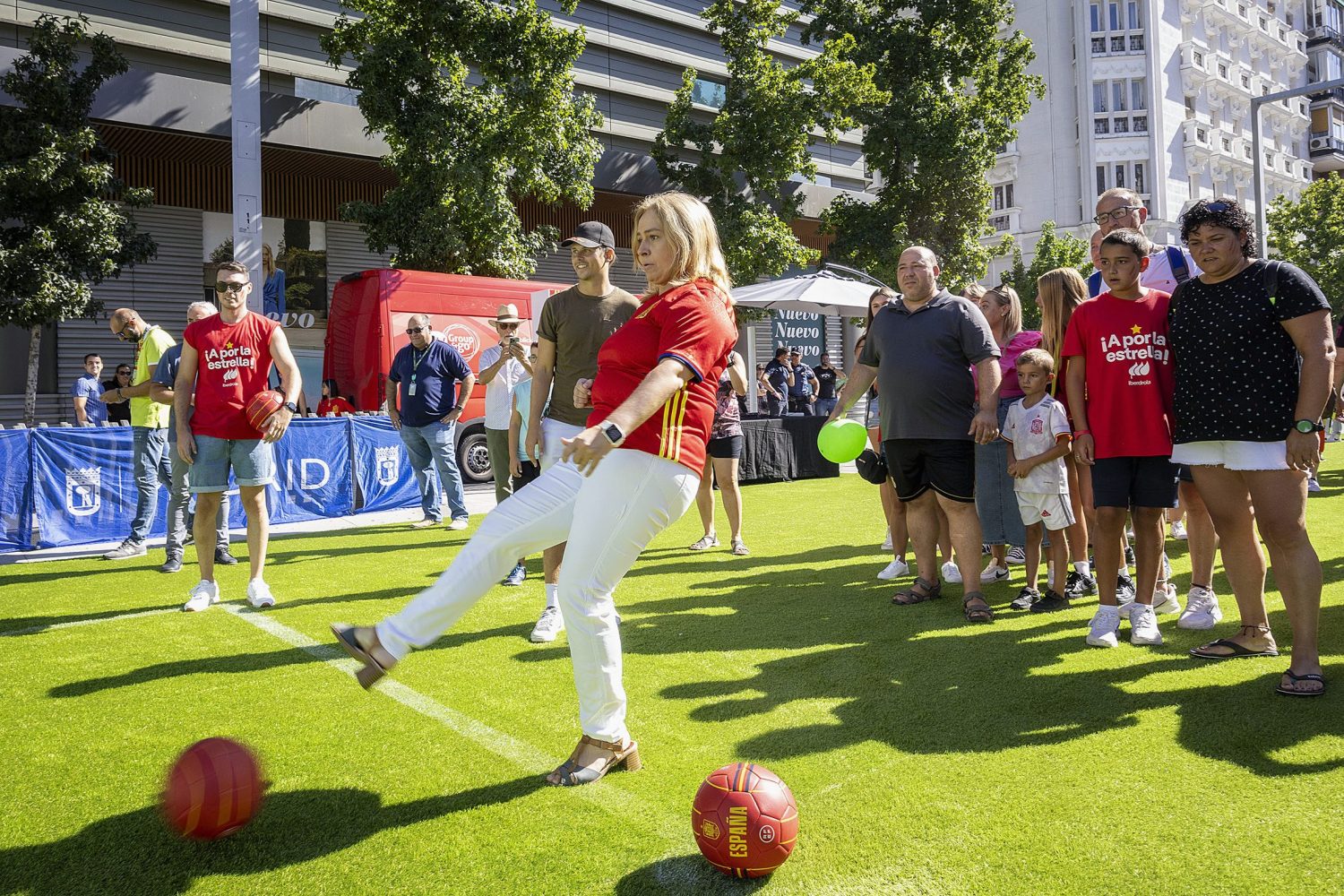 La delegada de Cultura, Turismo y Deporte, Marta Rivera de la Cruz, ha celebrado que “ya hay un ganador de la final que se juega este domingo, y es el deporte femenino español”, durante su visita a la FanZone instalada en el exterior del WiZink Center con motivo del evento organizado por el Ayuntamiento de Madrid, la Comunidad de Madrid, la Federación Española de Fútbol y el Consejo Superior de Deportes para que los madrileños puedan ver en cuatro pantallas gigantes dentro del recinto multiusos la final de la Copa Mundial que disputan las selecciones femeninas de fútbol de España e Inglaterra.