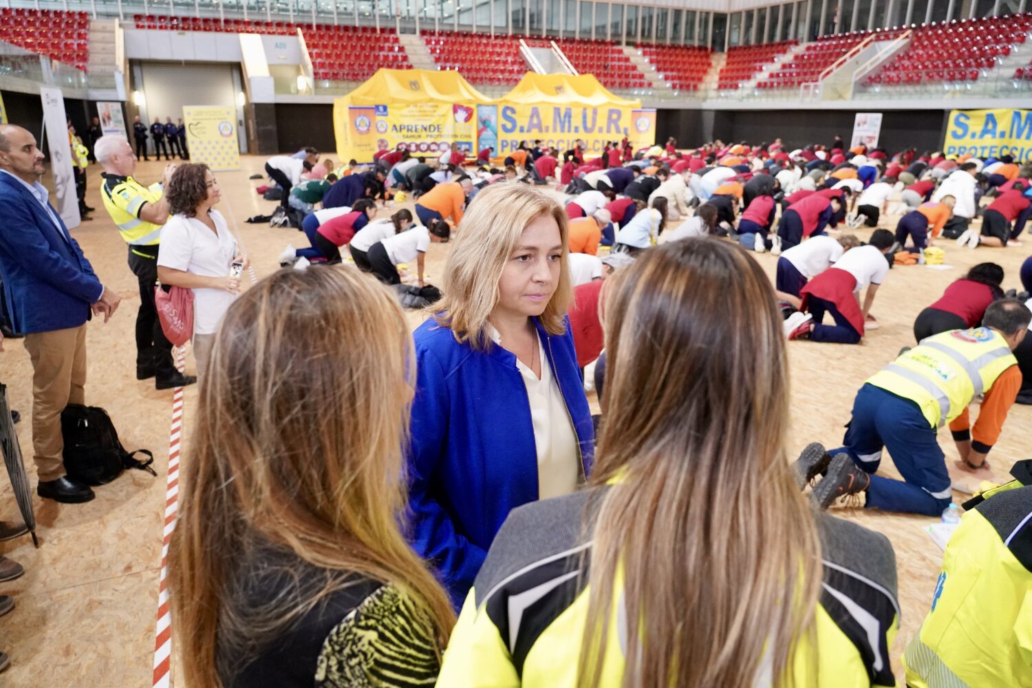 La vicealcaldesa de Madrid y delegada de Seguridad y Emergencias, Inma Sanz, ha visitado, en la Caja Mágica, a los profesionales y voluntarios de SAMUR-Protección Civil que, a lo largo del día de hoy, enseñan a 300 estudiantes de colegios e institutos madrileños las técnicas para realizar la reanimación cardiopulmonar (RCP). Esta iniciativa del Ayuntamiento de Madrid se realiza en colaboración con el Consejo Español de Resucitación Cardiopulmonar con motivo del Día Mundial de la Parada Cardíaca.