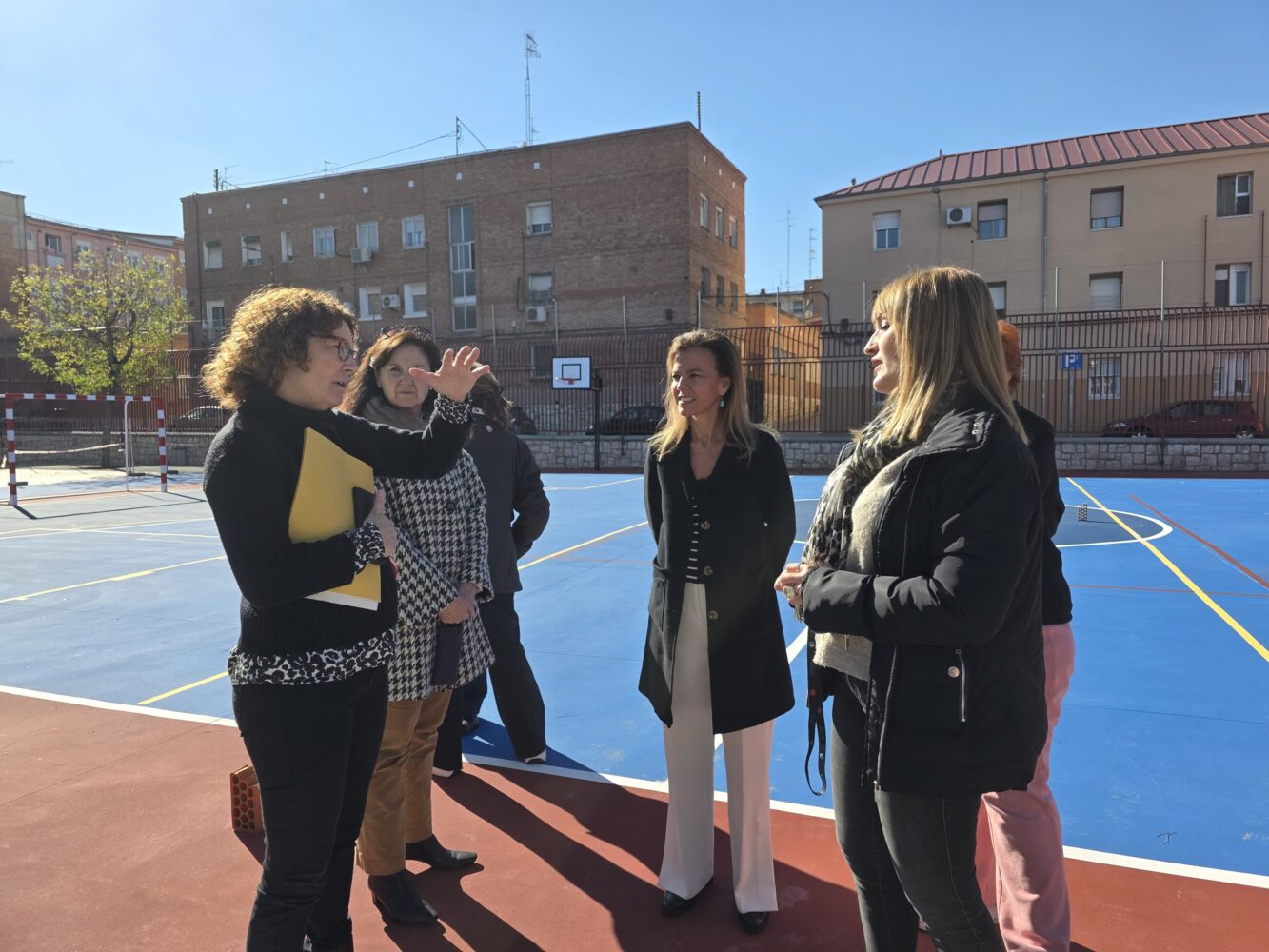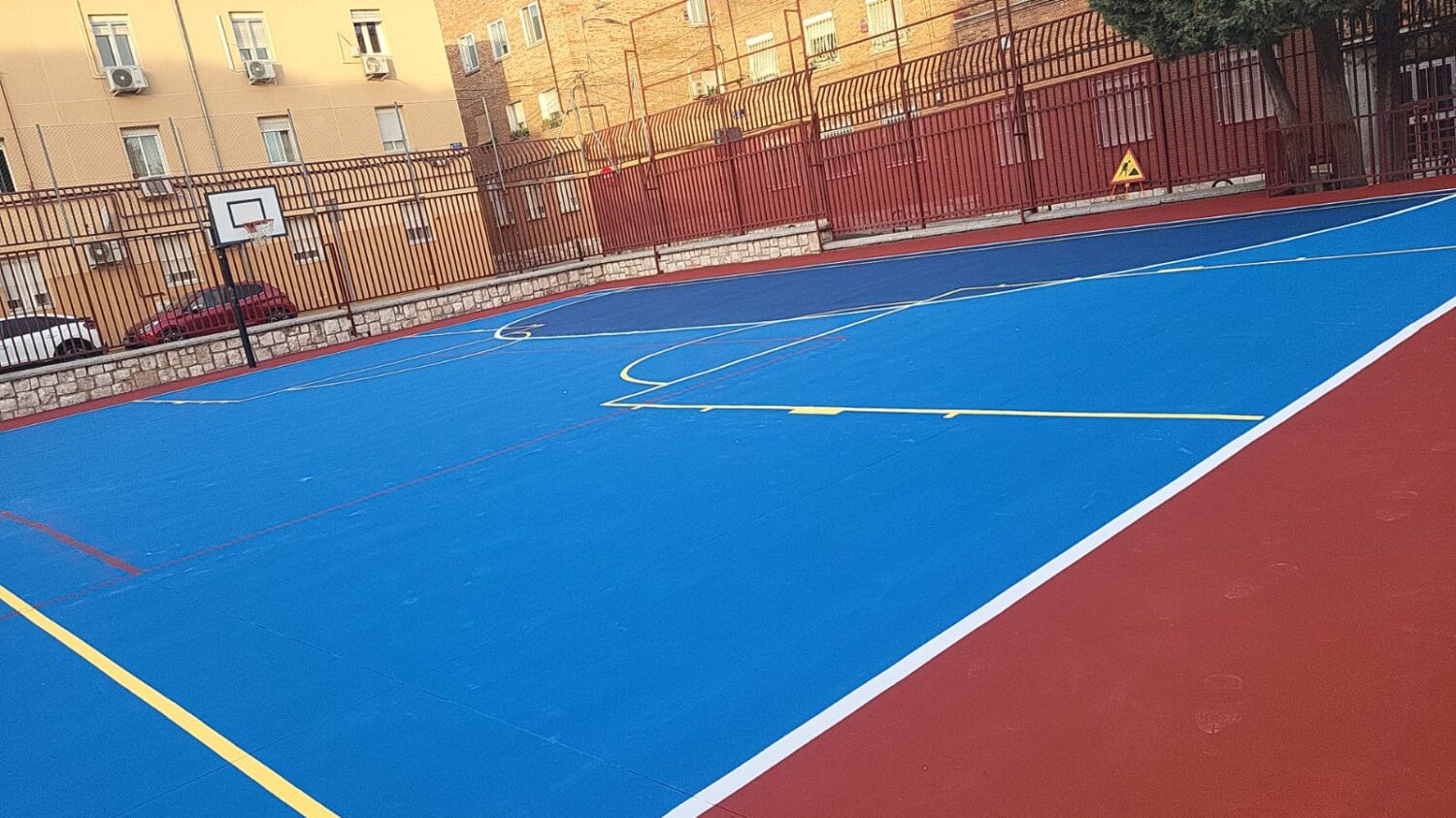 La intervención ha permitido renovar integralmente la pista deportiva, donde se ha instalado un nuevo pavimento de alta resistencia con acabado antideslizante. Además, se ha reparado el murete delimitador, se han acondicionado las escaleras de acceso mediante la colocación de un doble pasamanos y se han ejecutado nuevas soleras y canaletas para la correcta evacuación de las aguas pluviales.