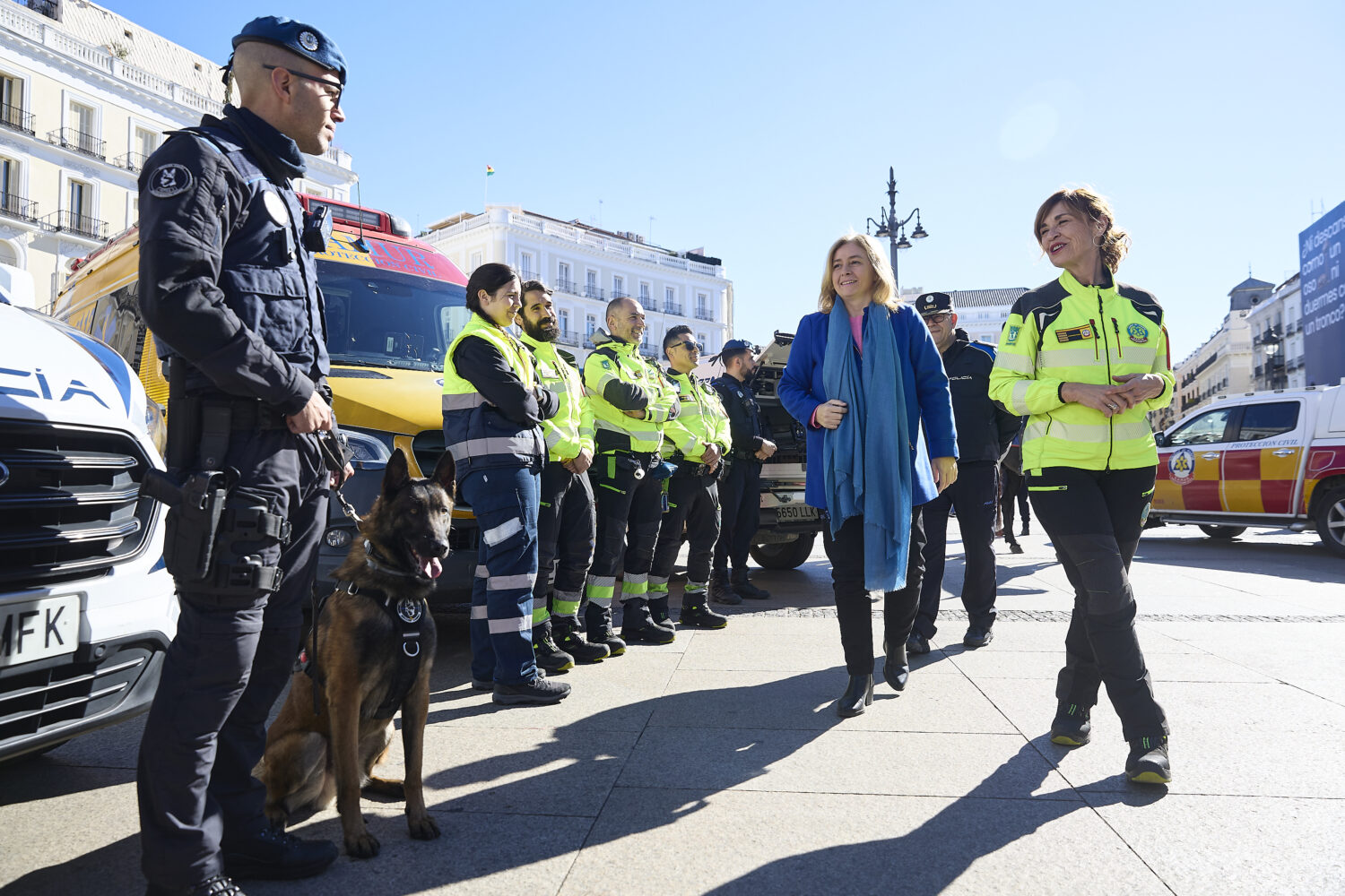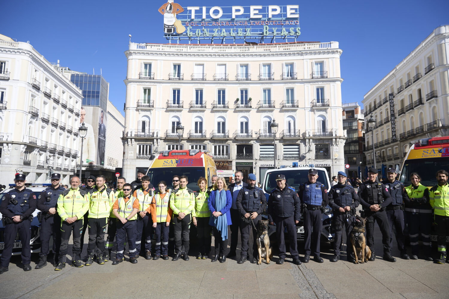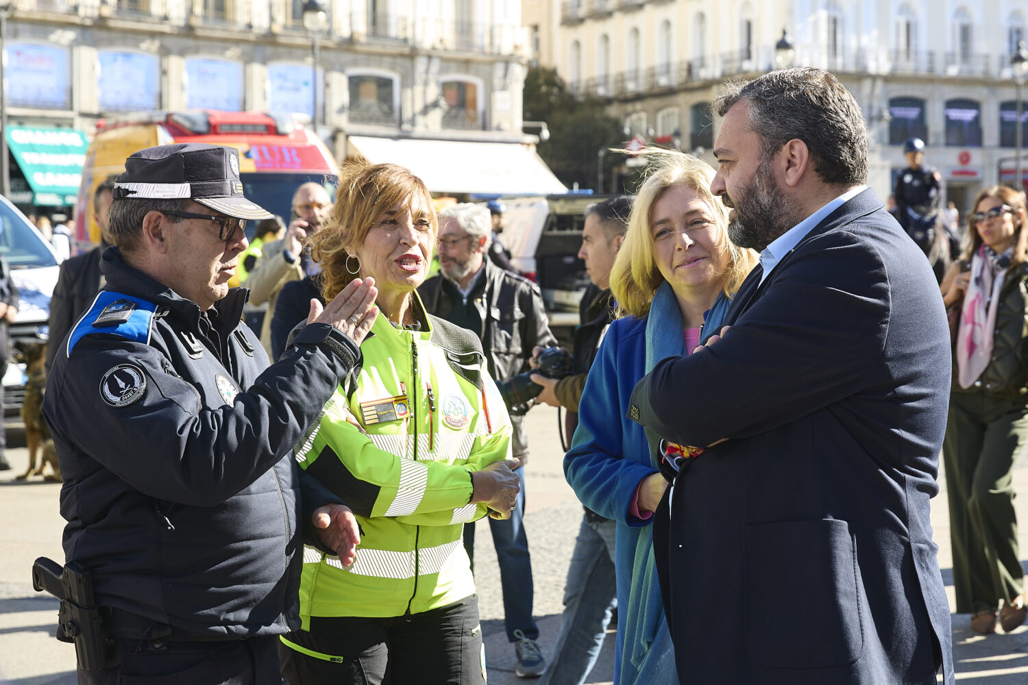 Sanz y Segura, con efectivos de seguridad y emergencias, que forman parte dispositivo para la Semana Santa madrileña