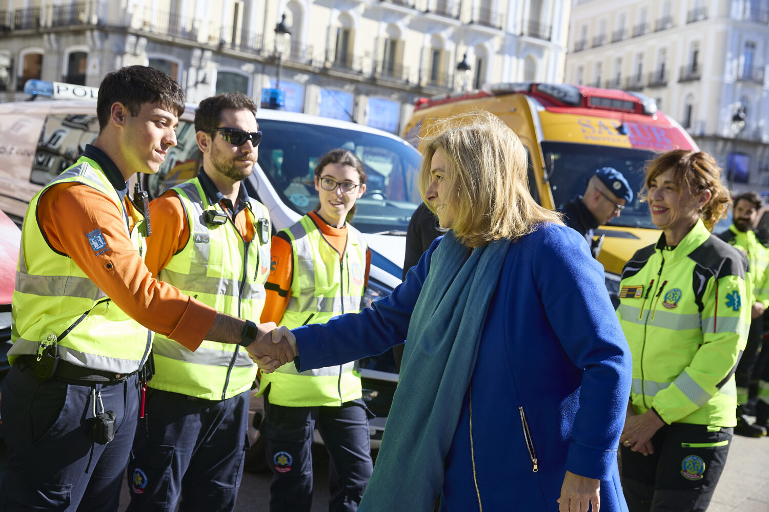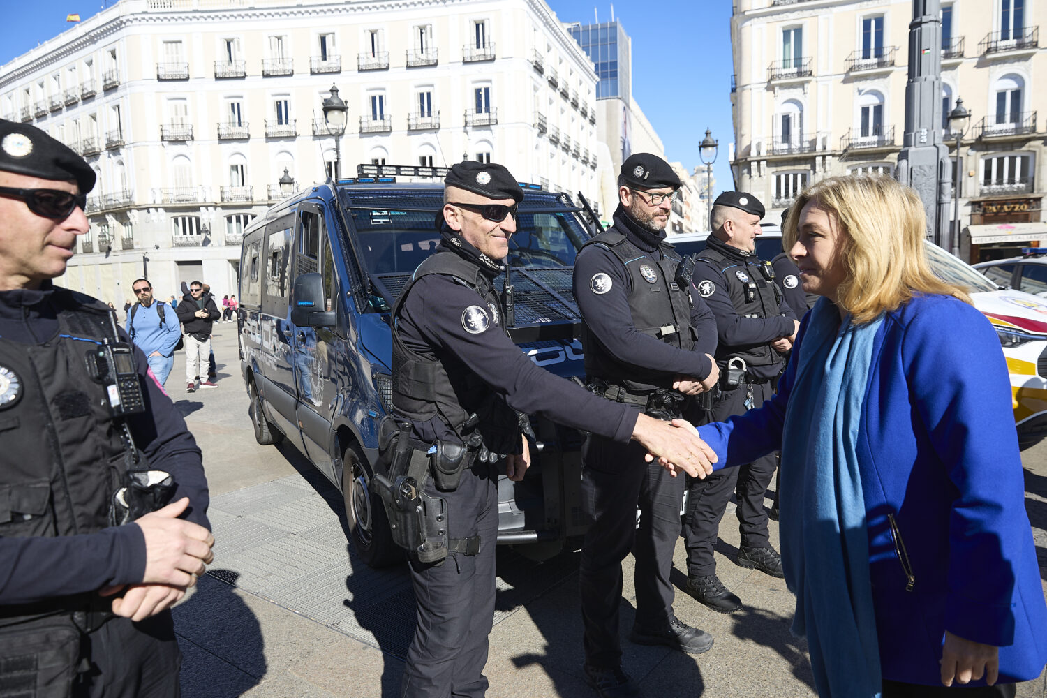 La vicealcaldesa de Madrid y delegada de Seguridad y Emergencias, Inma Sanz, acompañada del concejal de Centro, Carlos Segura, ha saludado esta mañana a varios de los efectivos que forman parte del dispositivo de seguridad y emergencias para la Semana Santa, que se desplegó el pasado viernes, 27 de marzo, y se extenderá hasta el 5 de abril, Domingo de Resurrección, con el objetivo de velar por que todos los actos programados se desarrollen con normalidad.