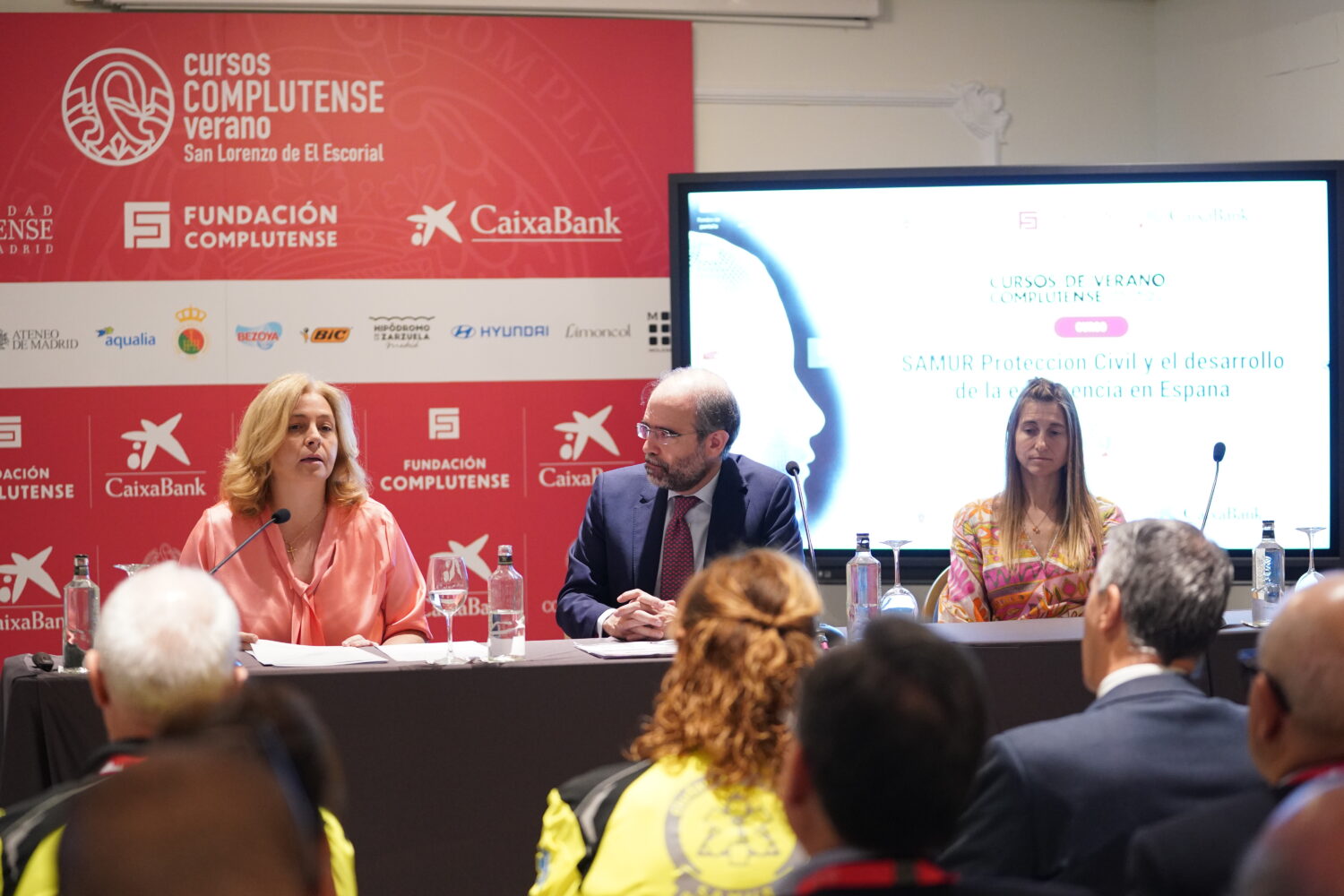 La vicealcaldesa de Madrid y alcaldesa en funciones, Inma Sanz, ha inaugurado el curso de verano ‘SAMUR Protección Civil y el desarrollo de la emergencia en España’ que los profesionales de SAMUR-Protección Civil imparten en el ciclo organizado por la Universidad Complutense en San Lorenzo de El Escorial. El curso contará también con formación práctica en reanimación cardiopulmonar (RCP) y primeros auxilios en instalaciones exteriores. En lo que va de año, los voluntarios de SAMUR-PC han formado a 27.232 personas en técnicas de reanimación, por lo que se podrían superar las 51.000 de 2024, una cifra histórica.