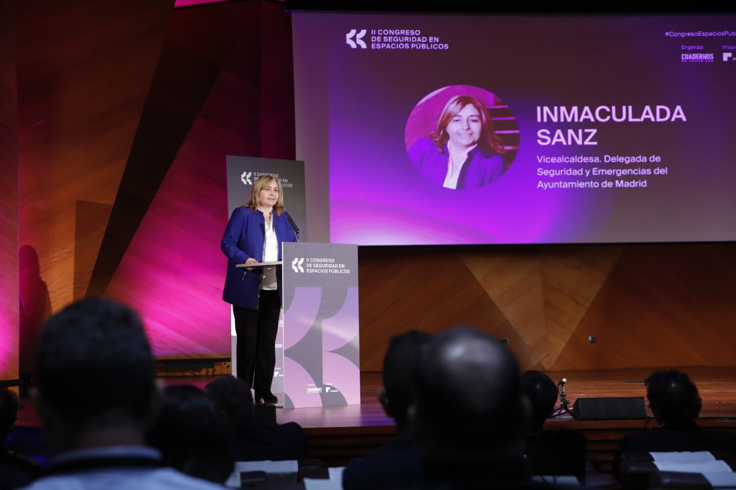 La vicealcaldesa de Madrid y delegada de Seguridad y Emergencias, Inma Sanz, ha clausurado hoy el II Congreso de Seguridad en Espacios Públicos, en el que ha recogido la distinción ‘Cuadernos de Seguridad’, otorgada a la Coordinación de Seguridad y Emergencias del Ayuntamiento de Madrid en reconocimiento a su destacada labor en el desarrollo e implantación de políticas destinadas a garantizar la seguridad y el bienestar en los espacios públicos, su compromiso ejemplar con la seguridad ciudadana y su labor en la planificación, coordinación y ejecución de estrategias para preservar el bienestar colectivo.