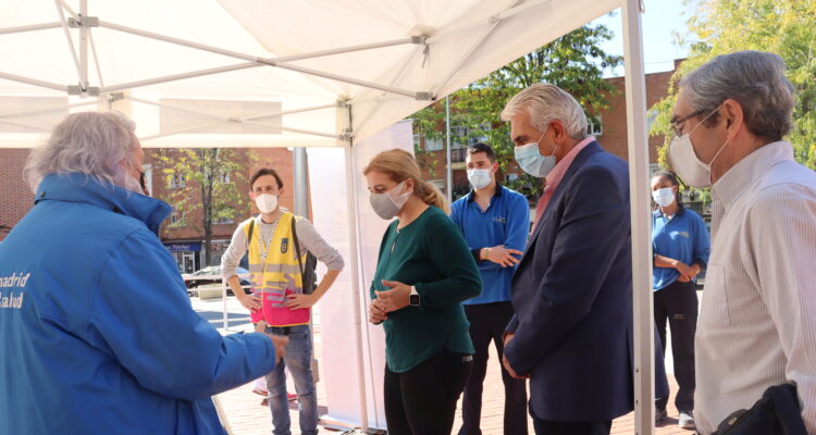 Además de este punto de información, Sanz ha visitado otros de los recursos municipales ubicados en los distritos de Puente y Villa de Vallecas. En primer lugar, acompañada por el concejal de Puente de Vallecas, Borja Fanjul, ha asistido a la realización de test de antígenos para detectar la presencia del virus en la población en el centro cultural El Pozo, en el marco de la colaboración que presta el Ayuntamiento de Madrid (a través de Madrid Salud y del SAMUR-Protección Civil) a las autoridades sanitarias de la Comunidad de Madrid.
