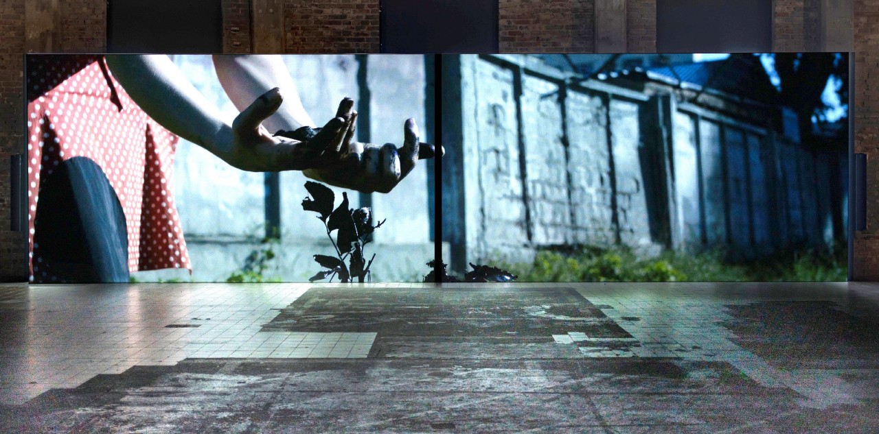 Hasta el próximo 30 de noviembre, la Nave Una de Matadero Madrid acoge la exposición Collapse of the Weave Function, del colectivo artístico Metahaven. Estos creadores, procedentes de Ámsterdam y liderados por Daniel van der Velden y Vinca Kruk, son internacionalmente conocidos por su influyente trayectoria en la investigación en lenguajes audiovisuales, diseño y ensayo, a lo largo de las últimas dos décadas. Collapse of the Weave Function encaja en uno de los ejes del LAB 4, la ciencia ficción “blanda”, esta intervención poética en línea con la tensión tecnológica propia del contexto actual. La propuesta se materializa en cuatro piezas: la instalación audiovisual Hometown y las piezas textiles Collapse of the Weave Function, After Attention (working title) y Centerless, encargadas por Medialab Matadero expresamente para la ocasión. /