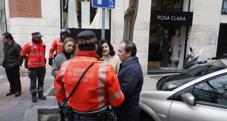 El delegado de Urbanismo, Medio Ambiente y Movilidad, Borja Carabante, acompañado por la concejala del distrito de Salamanca, Cayetana Hernández de la Riva, ha comprobado hoy en la calle de Ayala y sus inmediaciones cómo se desarrollando una nueva campaña de vigilancia específica que los agentes de movilidad están llevando a cabo hasta el próximo 10 de marzo para detectar posibles quebrantamientos de la normativa vigente.