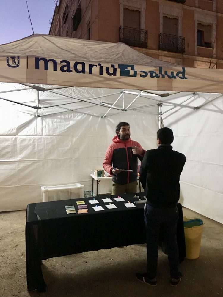 Este sábado, en la plaza del Dos de Mayo, se realizó la primera intervención de 2018 del programa de prevención del consumo de alcohol y otras drogas dirigido a adolescentes y jóvenes que el Ayuntamiento realiza en zonas de ‘botellón’