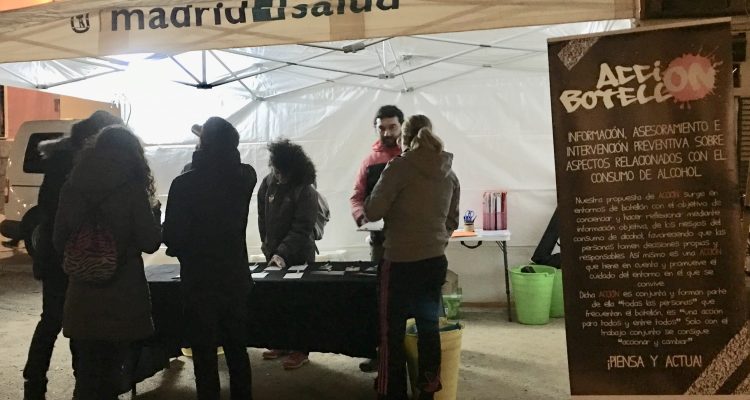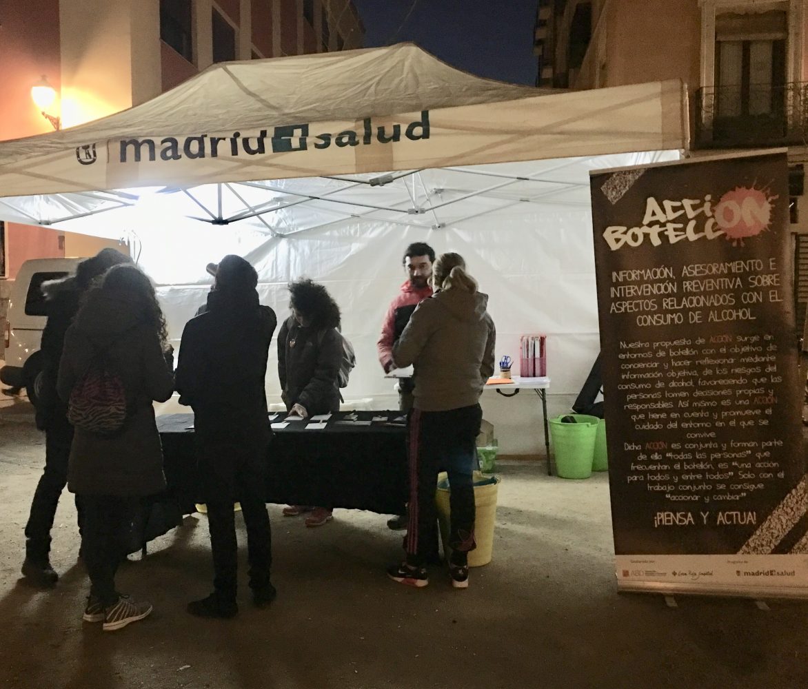 Este programa municipal, denominado “Acción botellón”, se estrenó en mayo de 2016 y está dirigido al sector más joven de la población. Su objetivo es incrementar la percepción del riesgo que conlleva el consumo del alcohol y otras drogas, que es especialmente bajo entre adolescentes. En 2017 se llevaron a cabo 100 intervenciones en zonas de consumo activo de 15 distritos de la ciudad.