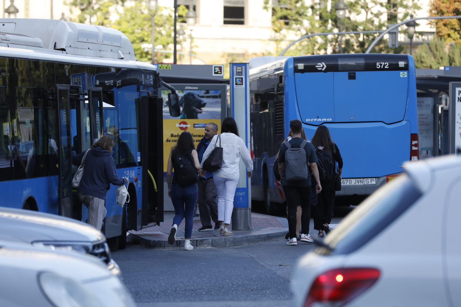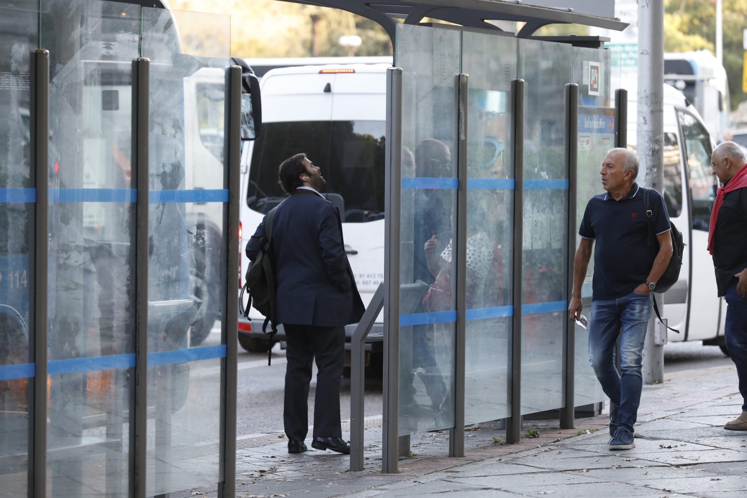 Imágenes de esta mañana de paradas y usuarios de la EMT