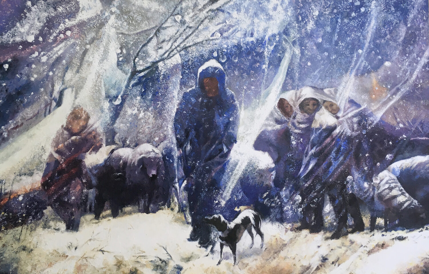 La exposición incluye además la obra Encuentro con el maestro en el camino de la historia y sus borrascas, que Isabel Guerra pintó con motivo de su exposición en el Museo Goya de Fundación Ibercaja en 2024 como homenaje a Francisco de Goya.
