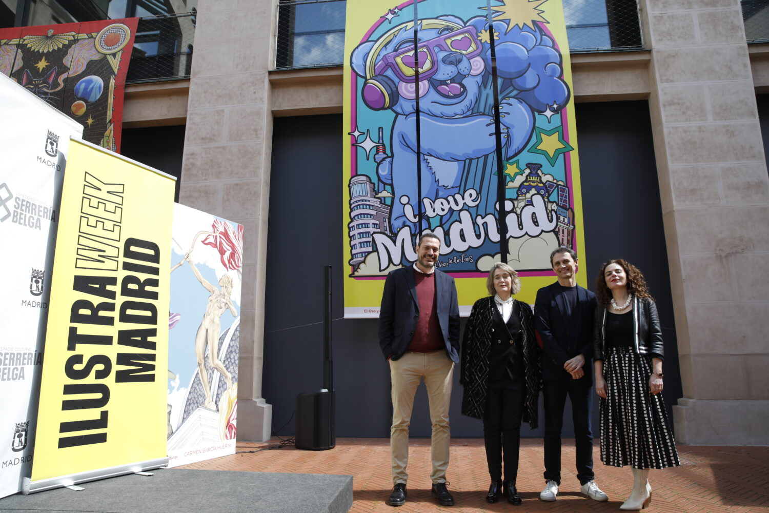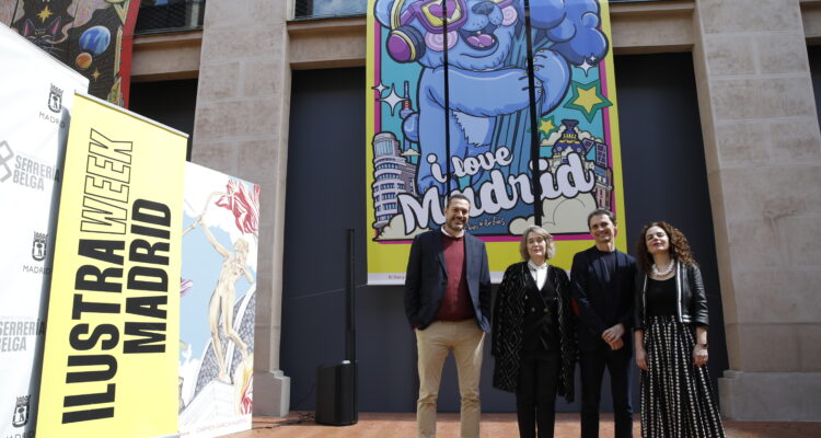 La delegada de Cultura, Turismo y Deporte, Marta Rivera de la Cruz, ha inaugurado esta mañana en el Espacio Cultural Serrería Belga la exposición Icónica Madrid, comisariada por la revista El Duende, en el marco de la presentación del festival IlustraweekMadrid 2025, del que forma parte. En la muestra, 16 ilustradores consagrados reinterpretan con una mirada actual símbolos emblemáticos de la capital como la estatua del Oso y el Madroño, el Rastro, el Retiro o la Fuente de Cibeles.
