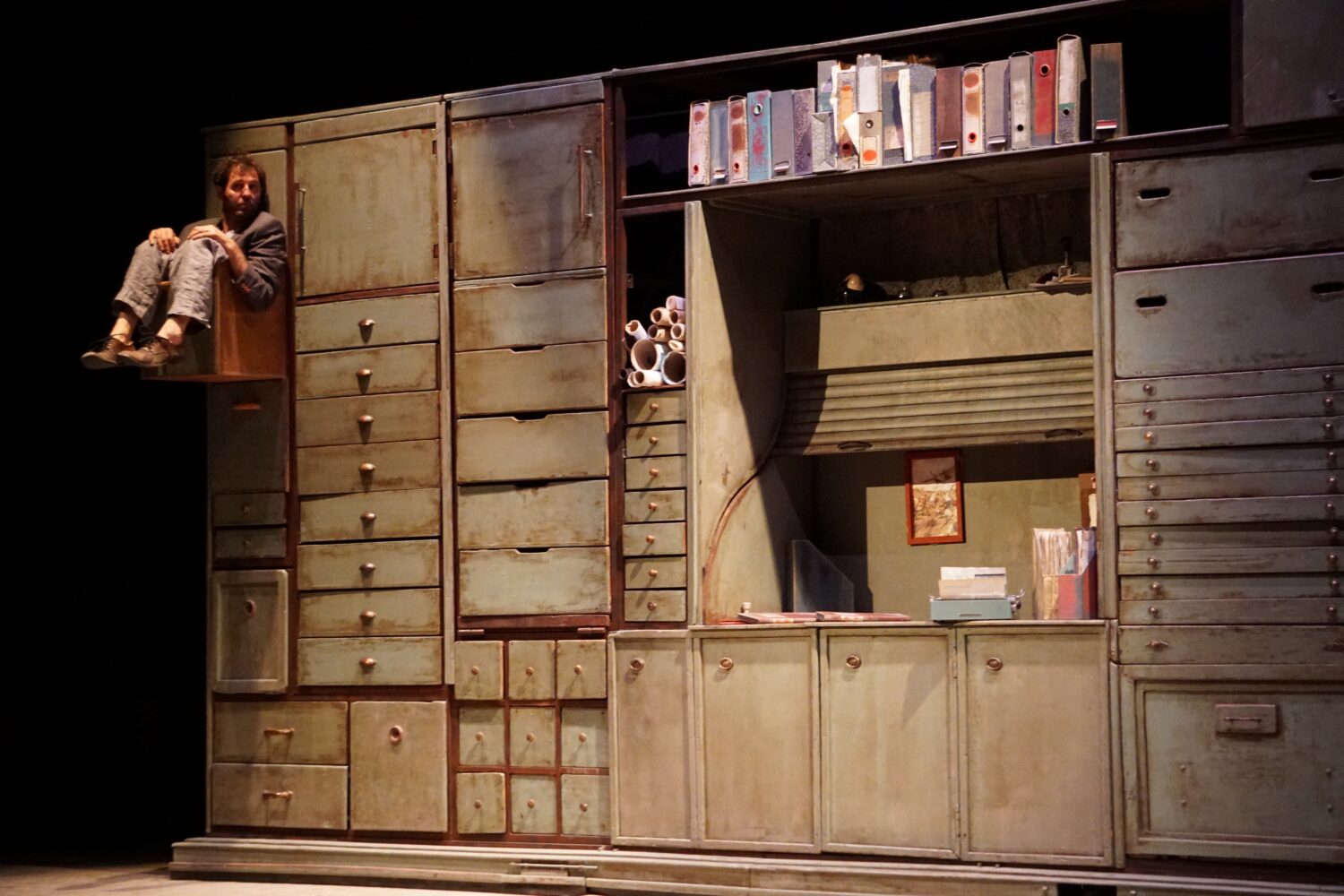 La trama, sazonada con humor, se mezcla con una realidad confusa en un espacio y momento indeterminados, con un espacio escénico que juega con la desproporción extrema de las medidas. El universo sonoro a través de la voz y el violín enfatizan la dualidad del personaje, transportándolo a un universo onírico.