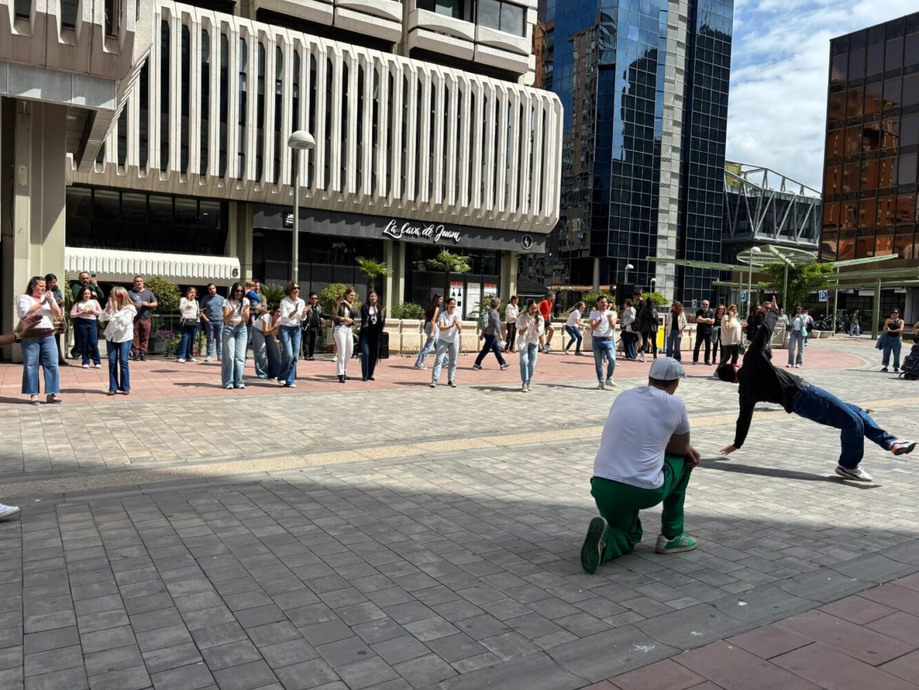 La Junta Municipal de Tetuán y la Escuela de Baile y Productora La Figuranta han celebrado esta mañana un flashmob al aire libre en el marco del Día Internacional de la Danza, que se conmemora el 29 de abril. La plaza de Manuel Gómez-Moreno ha sido el escenario para este evento que ha contado con la presencia de la concejala del distrito, Paula Gómez-Angulo. La actividad, conducida por bailarines profesionales y guiados por la coreógrafa Marta Otazu, directora de La Figuranta, ha reunido a más de un centenar de participantes que se han unido de manera improvisada al baile.