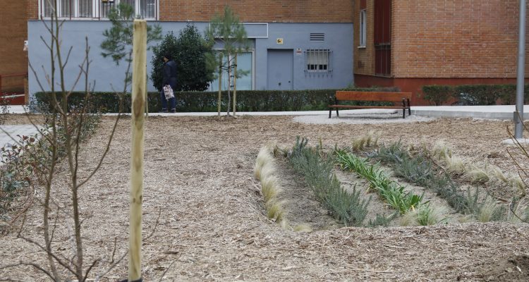 Este proyecto, desarrollado en el barrio de Canillas, ha contemplado la plantación de 17 nuevos árboles (10 almendros, 4 pinos y 3 ejemplares de liquidámbar americano), que se han seleccionado por su capacidad de adaptarse al entorno urbano y su contribución al paisaje local. Igualmente se ha plantado un seto utilizando 30 arbustos (photineas), que ha creado una barrera visual atractiva y funcional. Para una mejor conservación de las especies plantadas se ha instalado una red de riego automático. La capa de mulch que cubre desde ahora este espacio aportará nutrientes al terreno, actuará como barrera contra el crecimiento de malas hierbas y mantendrá el suelo más cálido en invierno y más fresco en verano.