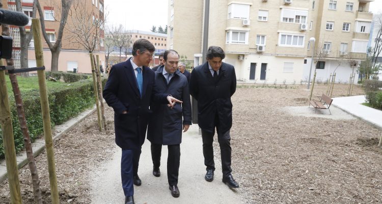 Los vecinos de trece distritos de la ciudad de Madrid disfrutarán de nuevas zonas ajardinadas, con más árboles y espacios rehabilitados, y en las que se mejorará su confort térmico, tanto en invierno como en verano, así como la gestión del agua utilizada para el riego. El delegado de Urbanismo, Medio Ambiente y Movilidad, Borja Carabante, ha visitado esta mañana una de las zonas donde ya se ha intervenido, ubicada en la calle de Alcorisa, en el distrito de Hortaleza. Carabante, acompañado del concejal delegado de Limpieza y Zonas Verdes, y el concejal presidente del distrito, David Pérez, ha comprobado el resultado de los trabajos de ajardinamiento y rehabilitación.