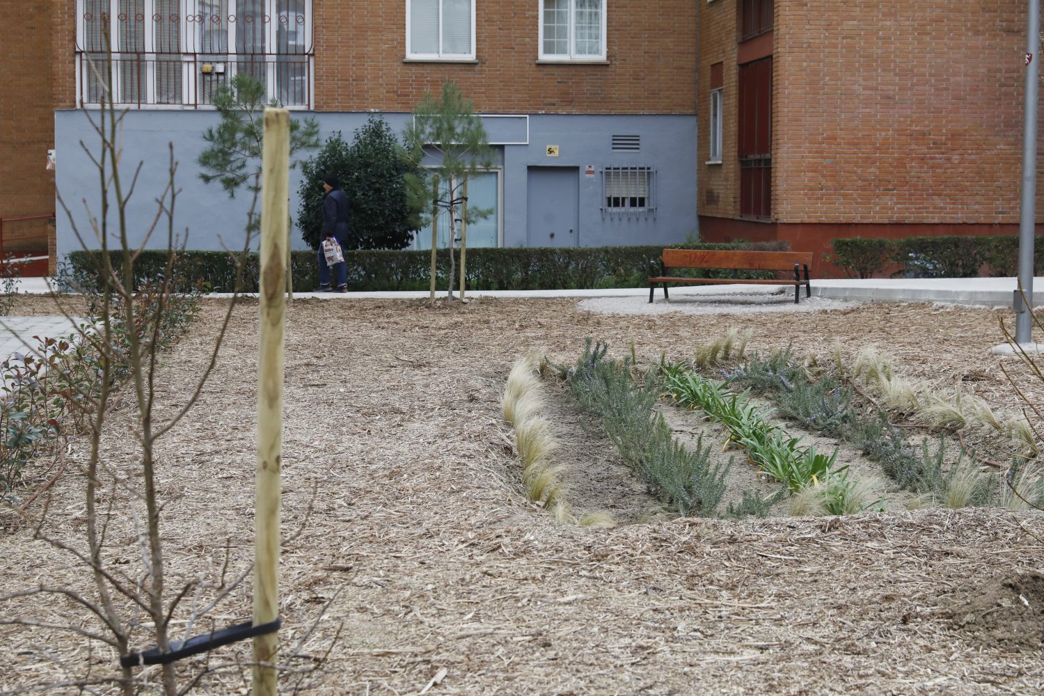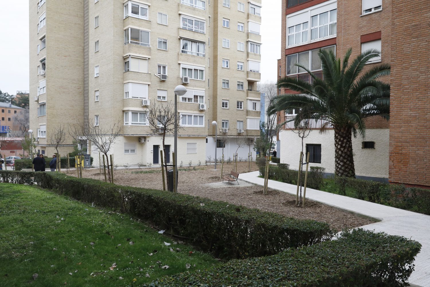 Este proyecto, desarrollado en el barrio de Canillas, ha contemplado la plantación de 17 nuevos árboles (10 almendros, 4 pinos y 3 ejemplares de liquidámbar americano), que se han seleccionado por su capacidad de adaptarse al entorno urbano y su contribución al paisaje local. Igualmente se ha plantado un seto utilizando 30 arbustos (photineas), que ha creado una barrera visual atractiva y funcional. Para una mejor conservación de las especies plantadas se ha instalado una red de riego automático. La capa de mulch que cubre desde ahora este espacio aportará nutrientes al terreno, actuará como barrera contra el crecimiento de malas hierbas y mantendrá el suelo más cálido en invierno y más fresco en verano.