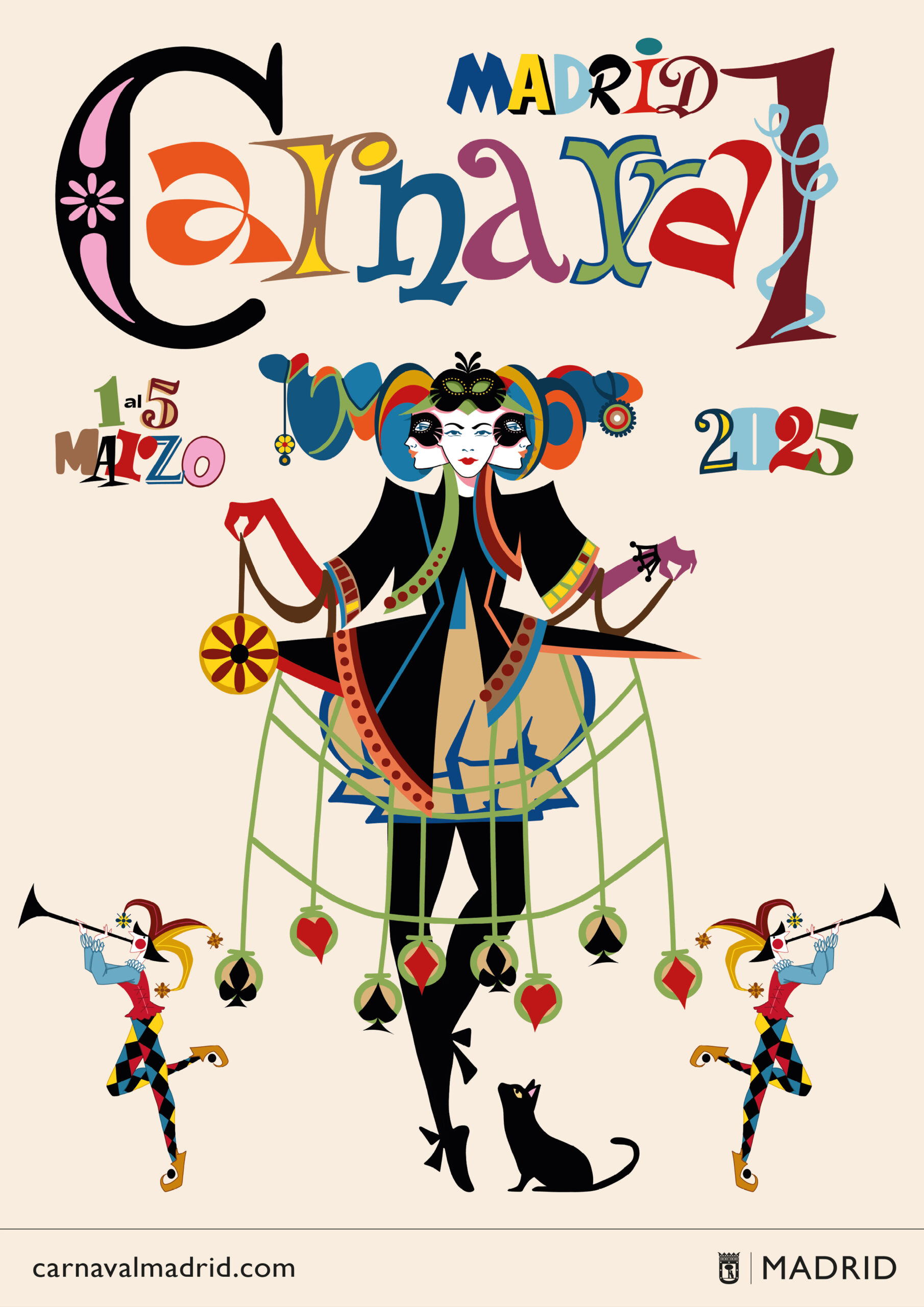 Un año más, Madrid se prepara para dar la bienvenida al carnaval. Del 1 al 5 de marzo, la ciudad se rinde a la fiesta del juego de identidades organizada por el Área de Cultura, Turismo y Deporte con el tradicional desfile y diversas actividades y actuaciones musicales. El ilustrador Abraham Menéndez (Gijón, 1977) ha sido el encargado de diseñar el cartel que desde hoy vestirá las calles de Madrid, una colorida composición de estilo vintage.