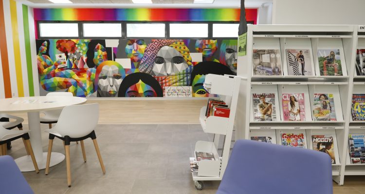 Una imagen vale más que mil palabras y eso es lo que representa el mural que el artista urbano Okuda San Miguel -junto a su equipo- han realizado en la Biblioteca Pública Municipal de San Fermín. La delegada de Cultura, Turismo y Deporte, Andrea Levy, ha inaugurado hoy en este espacio cultural el “lienzo” que narra en imágenes la historia reivindicativa llevada a cabo por los vecinos del barrio para conseguir disponer de una biblioteca. “Si hace unos meses estábamos muy satisfechos por la apertura de esta biblioteca tan reclamada y reivindicada por los vecinos de San Fermín, hoy estamos doblemente satisfechos, por inaugurar estos murales de Okuda que han contado son su participación”, ha subrayado la delegada.
