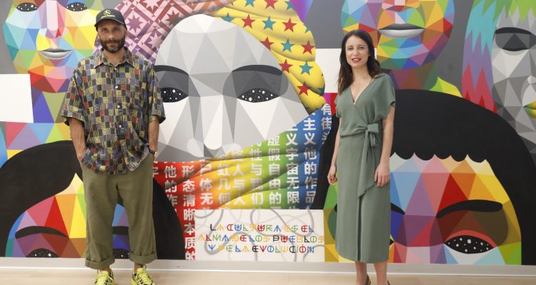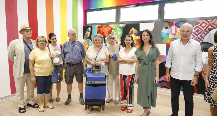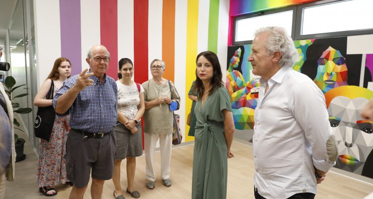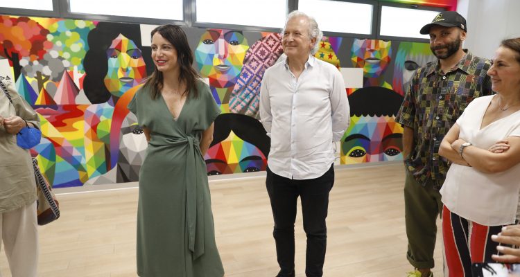 Levy ha estado acompañada por el representante de la Junta Directiva de la Asociación de Vecinos San Fermín, Víctor Renés, y de uno de los miembros del equipo de Okuda, Nacho Blumen, que le ha explicado cómo se han desarrollado los trabajos de esta obra colectiva entre el artista y los vecinos con la que todos pueden sentirse identificados. Okuda San Miguel, artista urbano con una relevante trayectoria nacional e internacional, ha aportado un valor añadido a este espacio cultural y le ha dotado de una seña de identidad propia.