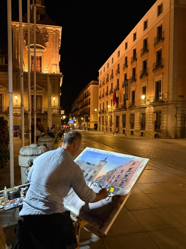 Cuarenta y dos pintores profesionales y aficionados se dieron cita la pasada tarde-noche en el II Certamen de Pintura Rápida Nocturna Madrid de los Austrias, organizado por la Junta Municipal de Centro y la Asociación Española de Pintores y Escultores (AEPE) en colaboración con C4lle, con el objetivo de fomentar la creación artística y contribuir a la promoción de la cultura madrileña y a la imagen visual, cultural, estética y artística del centro histórico de la ciudad.