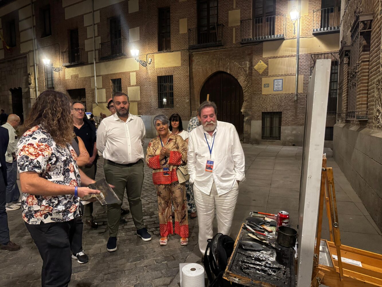 El concejal de Centro, Carlos Segura, ha visitado a los pintores en la plaza de la Villa, epicentro del certamen, satisfecho por la participación que ha registrado esta edición y por “el valor y la calidad artística y visual de los trabajos, realizados en tan poco espacio de tiempo”.