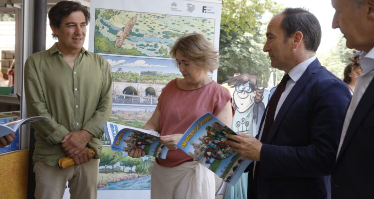 Una vuelta de 360º por Madrid es el título del cómic con el que el Ayuntamiento pretende dar a conocer el rico patrimonio verde y cultural de la capital. El delegado de Urbanismo, Medio Ambiente y Movilidad, Borja Carabante, y la delegada de Cultura, Turismo y Deporte, Marta Rivera de la Cruz, junto con el autor del cómic, Bruno Lanzarote, han presentado hoy esta obra gráfica en la caseta del Ayuntamiento en la 84ª edición de la Feria del Libro de Madrid. Un recorrido por los parques y jardines más emblemáticos de la ciudad, pero también por algunos de sus enclaves turísticos más reconocidos, que llegará a los colegios e institutos madrileños gracias a la edición de 60.000 ejemplares.