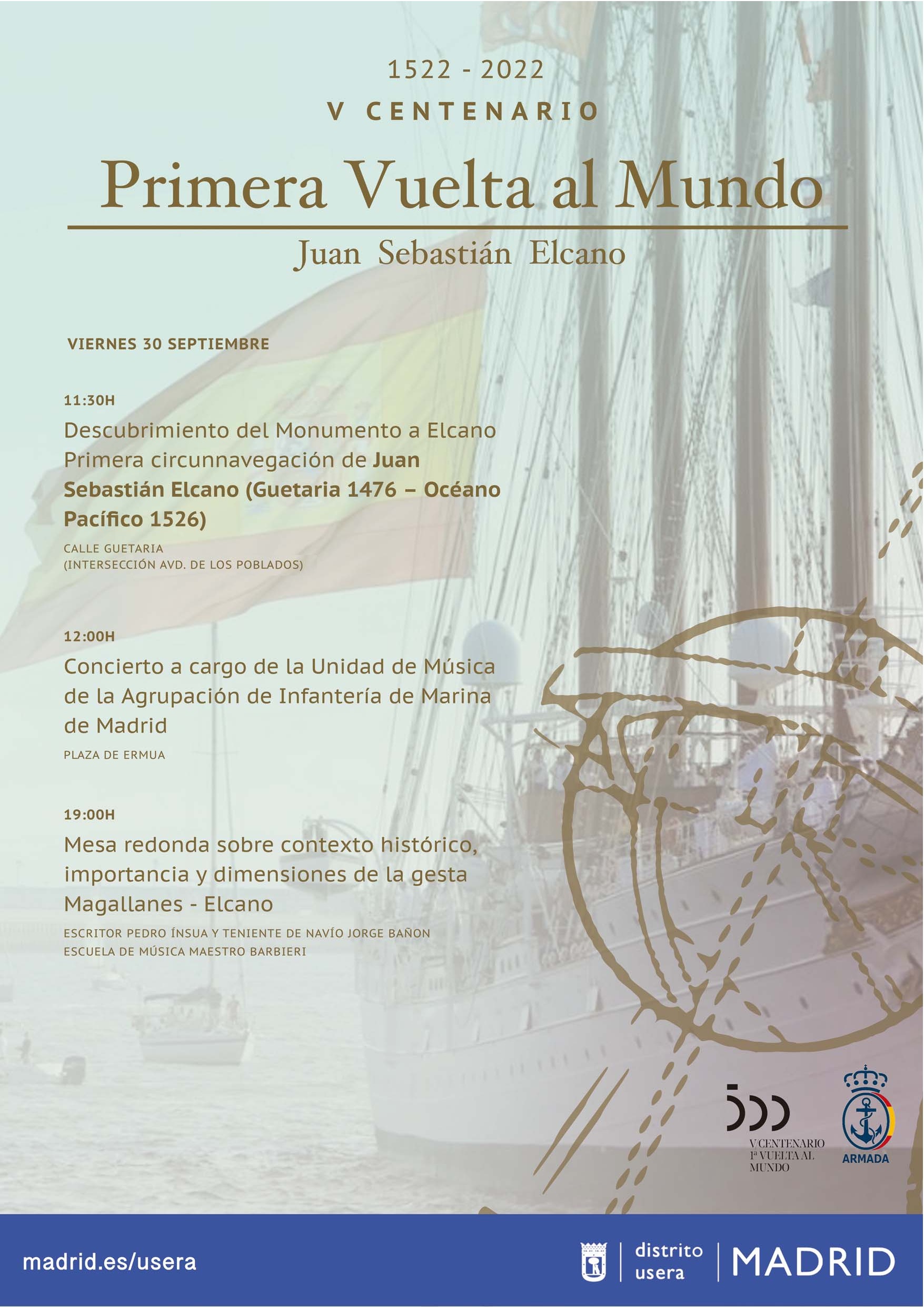 Se cumplen 500 años de la vuelta al mundo de Juan Sebastián Elcano y el distrito de Usera rinde homenaje al navegante, oriundo de Guetaria, y a la primera cincunnavegación con una serie de actos culturales y la instalación de dos monumentos conmemorativos de este hecho histórico en el distrito.