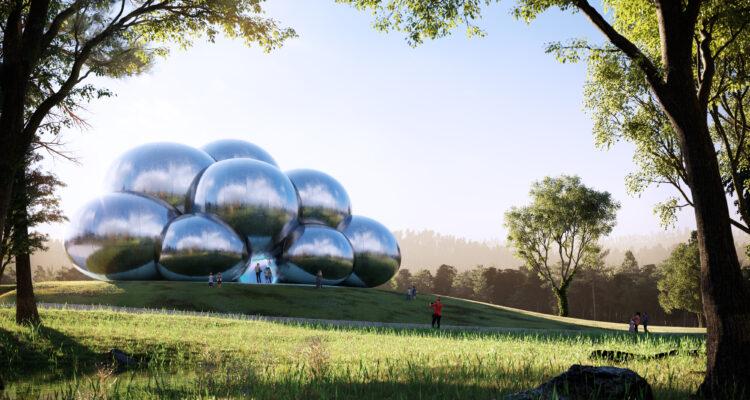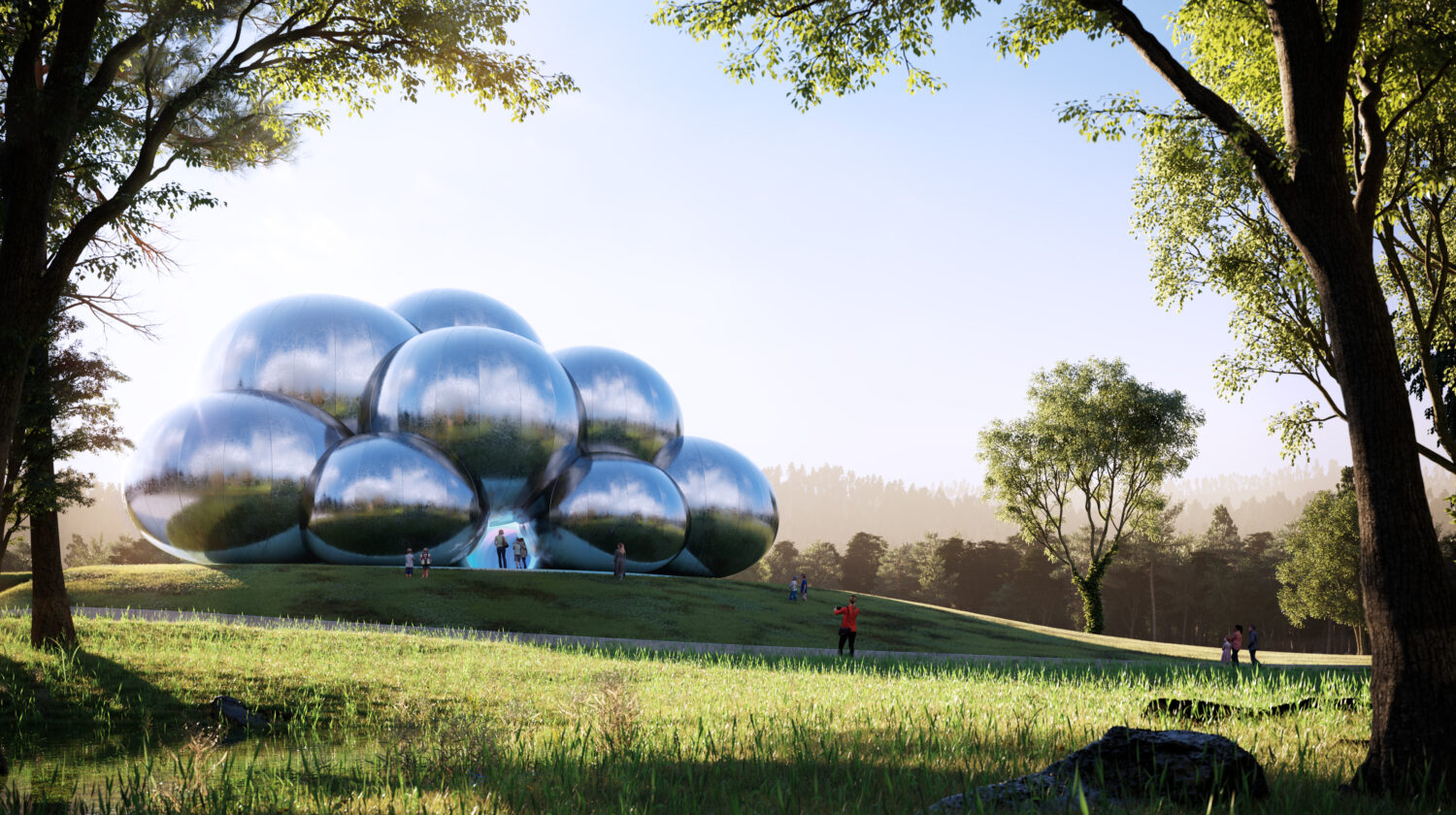 ‘Bounce by Circa’ transcurre en una carpa diseñada por el estudio AL_A. Un singular espacio en el que el exterior es una llamativa constelación de burbujas cromadas, una estructura inflable en forma de nube de 15 metros de altura y 30 metros de diámetro que refleja el entorno a su alrededor y el interior es un mundo de maravillas y deleites que acoge la nueva creación de la compañía australiana Circa Contemporary Circus.