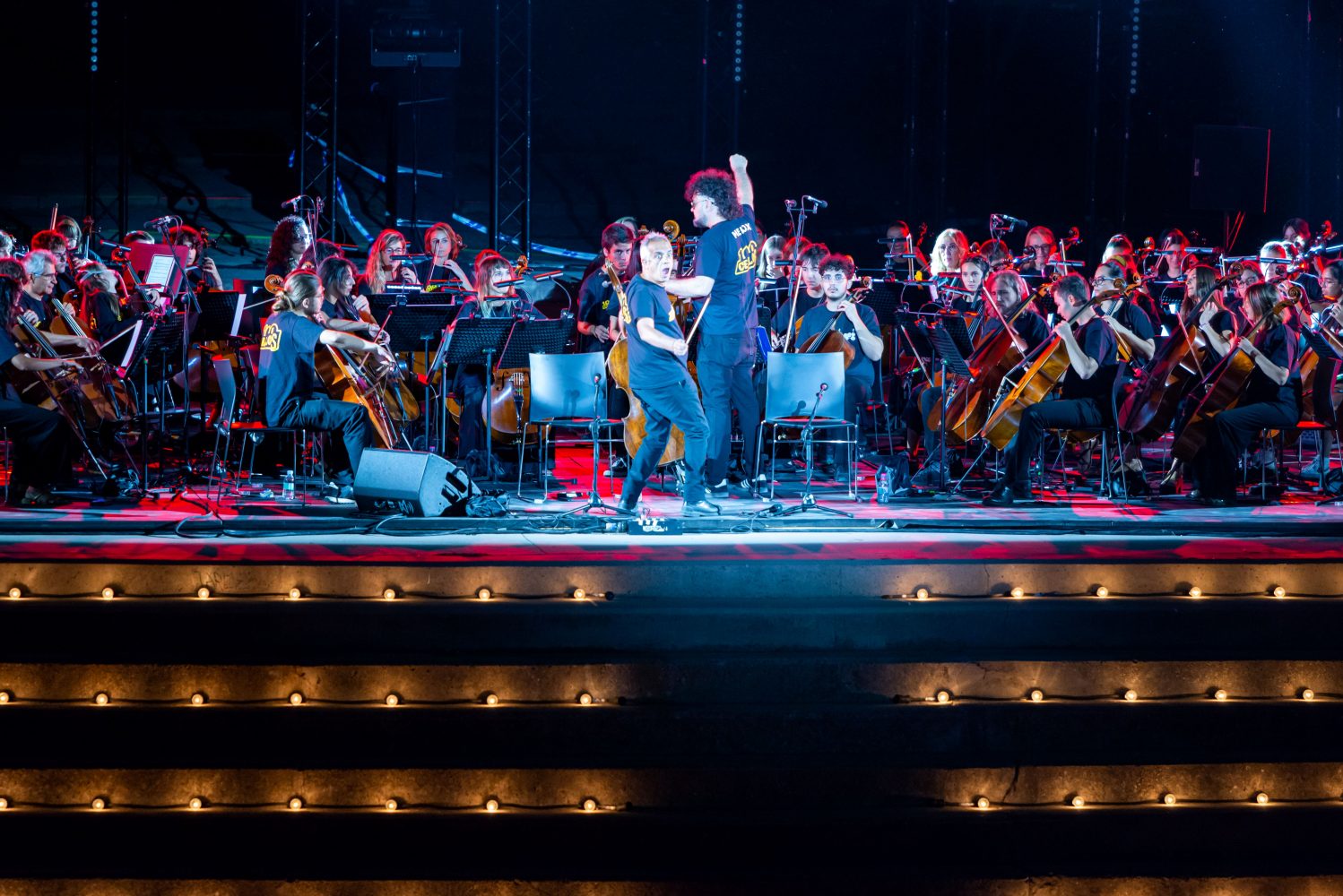 El Auditorio del parque Enrique Tierno Galván acogió anoche la última actividad programada en el marco de la 39ª edición de Veranos de la Villa, el festival organizado por el Área de Cultura, Turismo y Deporte. Como broche final, 14.000 personas disfrutaron de la actuación de esta orquesta abierta y ‘transversal’, compuesta por grandes profesionales, solistas famosos, estudiantes, aficionados y apasionados de la música y dirigida por los músicos italianos Giovanni Sollima y Enrico Melozzi. Un broche de oro para este festival que este año ha conseguido aumentar considerablemente la cifra de espectadores.