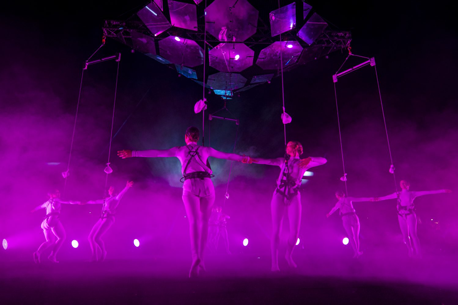 Durante las noches del 5 y 6 de julio el cielo de Madrid se convertirá en el escenario en el que fascinantes figuras se transformarán de manera hipnótica, recordando a los asistentes las coreografías grupales de natación sincronizada y el ballet clásico. Una creación llena de alegorías y símbolos, recordando mitos y leyendas ancestrales. El resultado es capaz de generar momentos de gran belleza y plasticidad con la intención de hacernos conectar con la magia de lo subliminal, celebrar el poder de los sentidos y contagiar emociones.