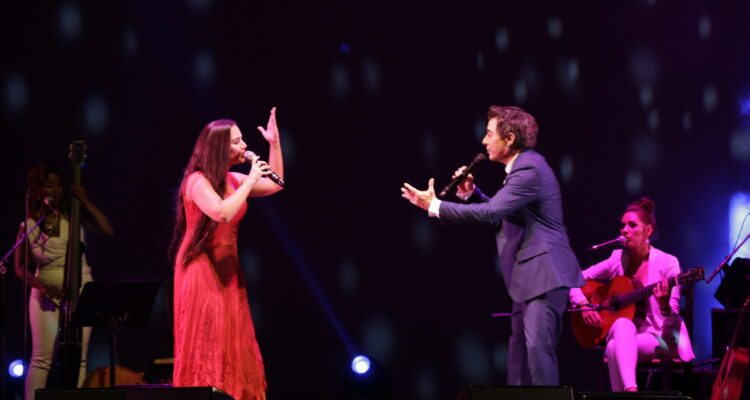 Juan Valderrama arrancó aplausos y lágrimas a un público emocionado con su propuesta Mujeres de carne y verso en el Patio de Conde Duque en Veranos de la Villa, programado por el Área de Cultura del Ayuntamiento de Madrid. Acompañado de una banda de maestras instrumentistas y con artistas invitadas como Rozalén, Cristina Pato, María Toledo, Las Migas y Miriam Cantero, los espectadores vivieron la emoción de 26 siglos de poesía en femenino.