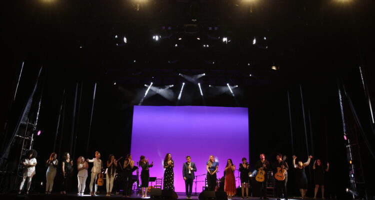 Diferentes momentos del concierto de Juan Valderrama junto a Rozalén, María Toledo, Cristina Pato, Las Migas y Miriam Cantero. Fotos de Lukasz Michalak Madrid-Destino