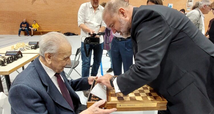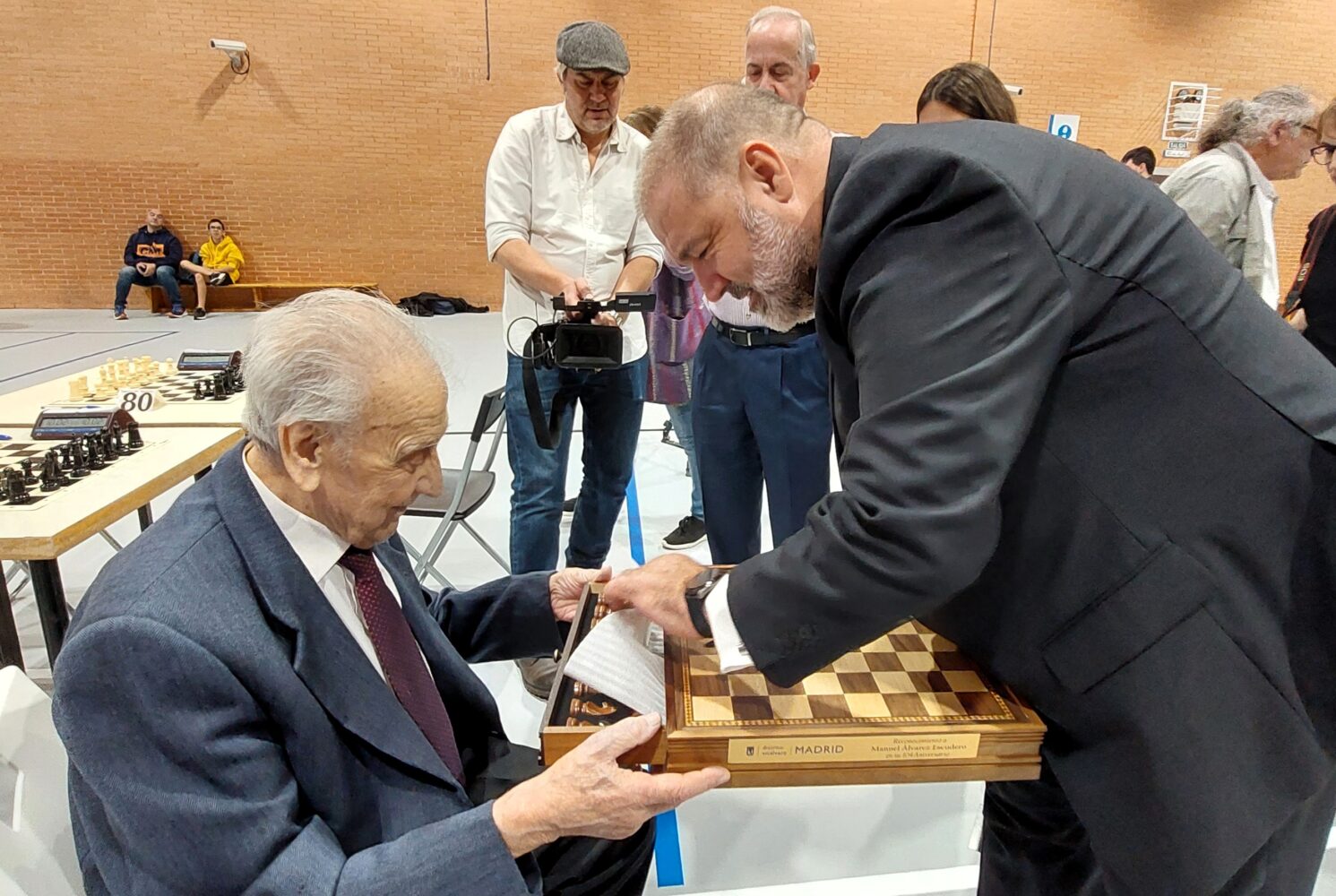 El Centro Deportivo Municipal Faustina Valladolid ha sido el escenario de un torneo de ajedrez rápido en homenaje a Manuel Álvarez Escudero, miembro del Club de Ajedrez de Valdebernardo, quien ha recibido un obsequio de manos del concejal de Vicálvaro, Ángel Ramos.