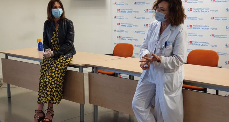 La concejala del distrito de Villa de Vallecas, Concha Chapa, ha visitado hoy el Hospital Universitario Infanta Leonor para agradecer al equipo directivo y a los trabajadores su trabajo y dedicación para que los pacientes que han sido tratados en este centro superaran la COVID-19. Chapa ha hecho extensivo su agradecimiento al Hospital Virgen de la Torre, que ha compartido con el Infanta Leonor la situación de extrema gravedad durante la crisis sanitaria.