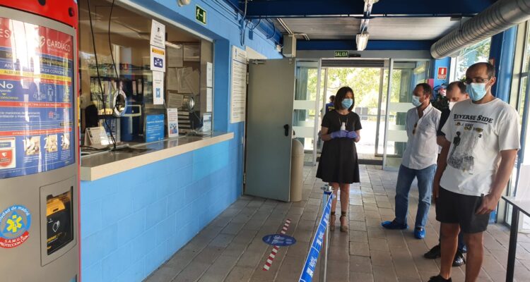 La concejala del distrito de Villa de Vallecas, Concha Chapa, ha visitado la piscina climatizada del Centro Deportivo Municipal Cerro Almodóvar que se mantendrá abierta para uso recreativo hasta el próximo 15 de septiembre, durante la campaña de verano 2020. Como medida de seguridad, se han establecido dos turnos diarios de acceso: de 10:00 h a 14:30 h y de 16:30 h a 21:00 h. Entre ambos turnos se realizarán tareas de limpieza y desinfección en todas las dependencias de la piscina.