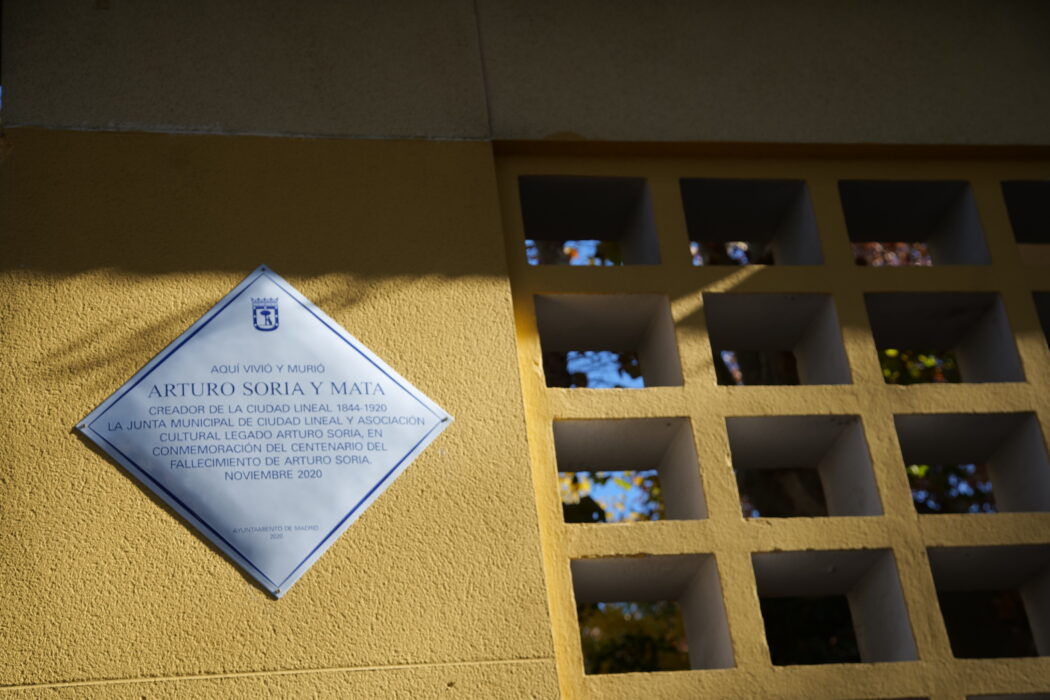 El pleno del distrito de Ciudad Lineal aprobó por unanimidad la instalación de una placa en recuerdo del centenario del fallecimiento de Arturo Soria con el siguiente texto: “Aquí vivió y murió Arturo Soria y Mata, creador de la Ciudad Lineal, 1844- 1920. La Junta Municipal de Ciudad Lineal y la Asociación Cultural Legado Arturo Soria, en conmemoración del centenario del fallecimiento de Arturo Soria. Noviembre 2020.”
