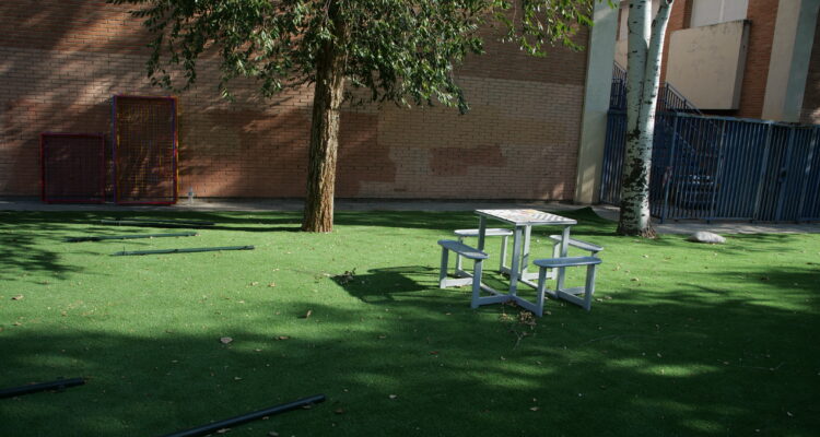Con este proyecto se acondiciona el patio sureste y la zona baja, que presentaban un mal estado de conservación, y en la zona más próxima al gimnasio se va a disponer de un nuevo saneamiento que reduzca el embalsamiento de agua. Además, se sustituirán algunos de los juegos infantiles, se instalará otra zona de juegos, se plantarán nuevos árboles para conseguir más espacio de sombra, se sustituirán las praderas por césped artificial y se creará una pista deportiva. Por último, en la zona bajo los árboles se hará un camino de servicio.