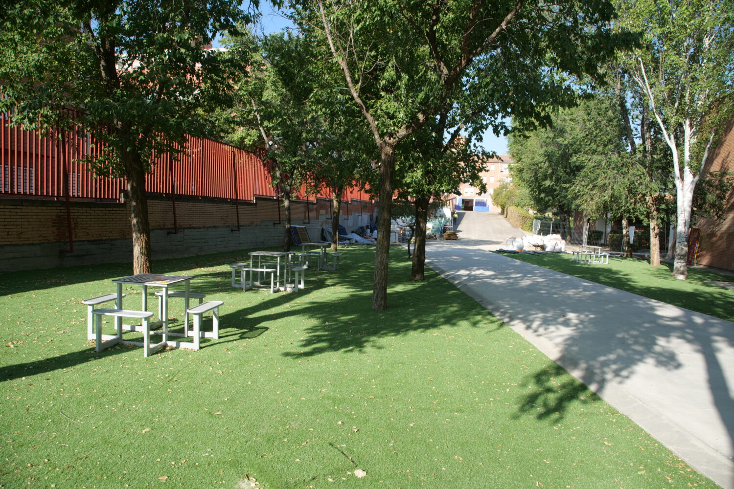Con este proyecto se acondiciona el patio sureste y la zona baja, que presentaban un mal estado de conservación, y en la zona más próxima al gimnasio se va a disponer de un nuevo saneamiento que reduzca el embalsamiento de agua. Además, se sustituirán algunos de los juegos infantiles, se instalará otra zona de juegos, se plantarán nuevos árboles para conseguir más espacio de sombra, se sustituirán las praderas por césped artificial y se creará una pista deportiva. Por último, en la zona bajo los árboles se hará un camino de servicio.