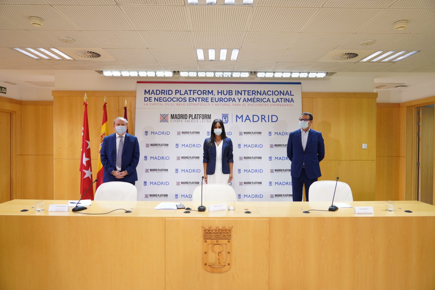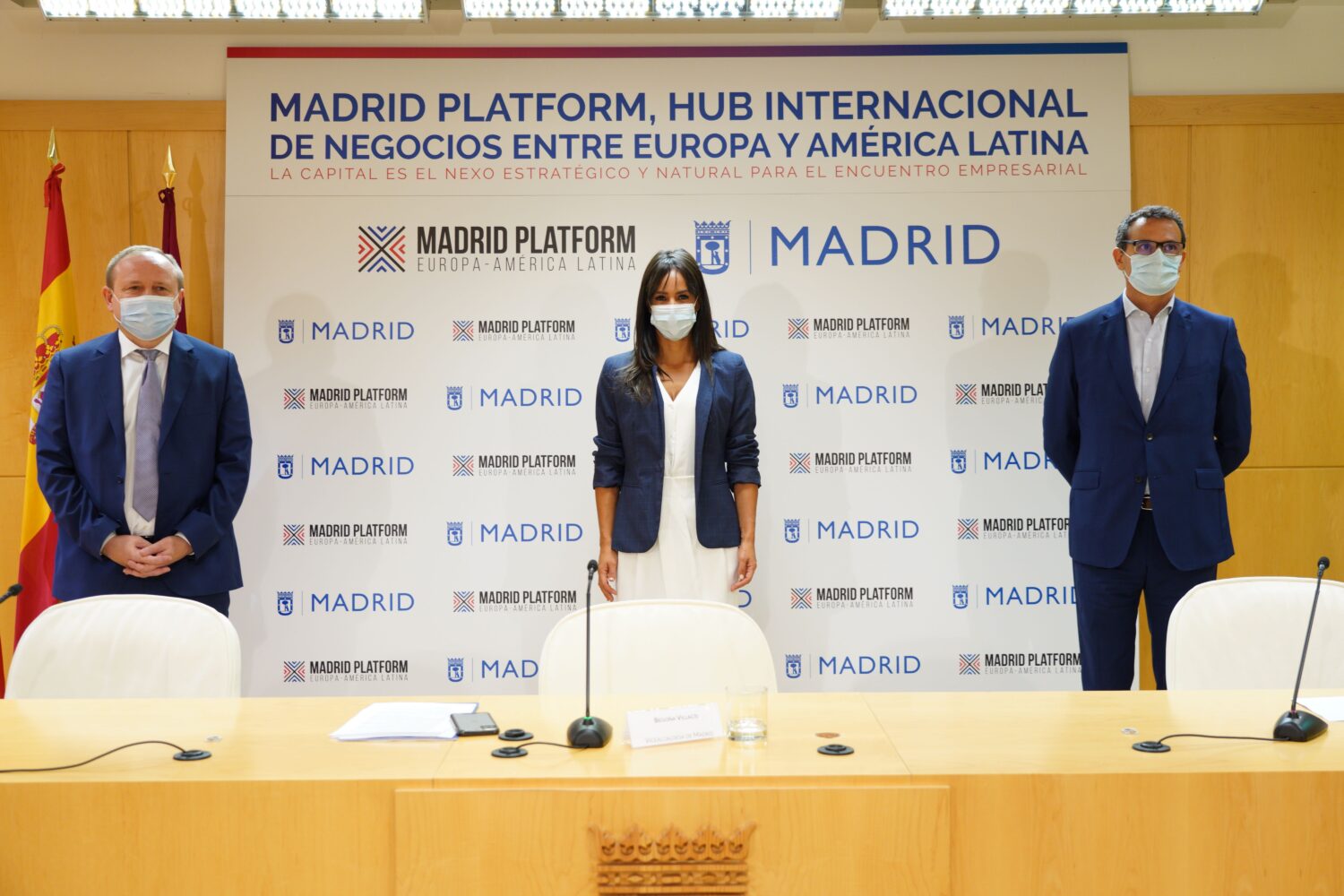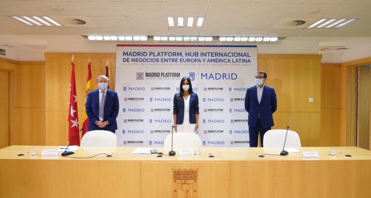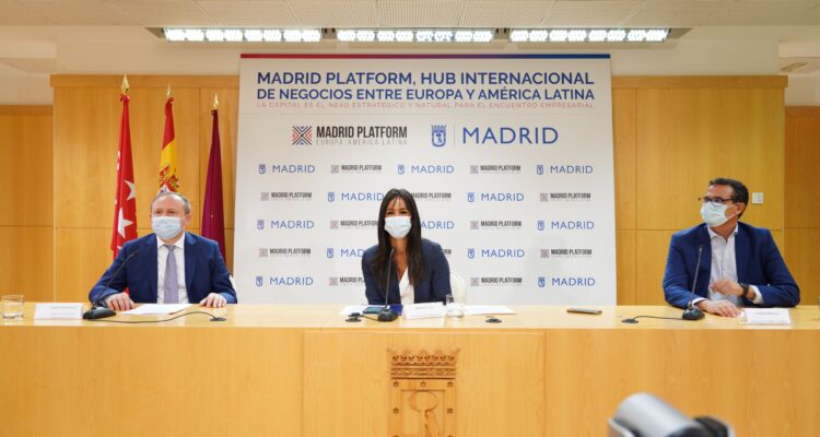La vicealcaldesa de Madrid, Begoña Villacís, acompañada del delegado de Economía, Innovación y Empleo, Miguel Angel Redondo, ha presentado esta mañana Madrid Platform, una iniciativa que tiene como objetivo convertir a Madrid en el centro internacional de negocios permanente entre Europa y América Latina. Esta plataforma prepara un encuentro físico y virtual que se celebrará del 10 al 12 de mayo de 2021 en Madrid y que será un espacio de negocios, relaciones comerciales, culturales y lugar de reflexión e ideas entre ambos continentes.