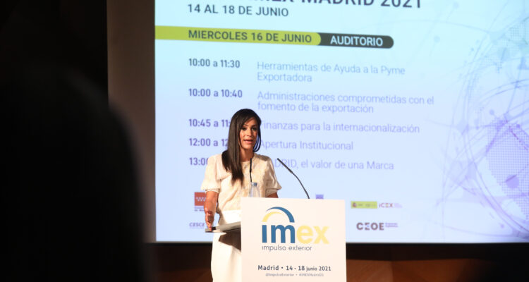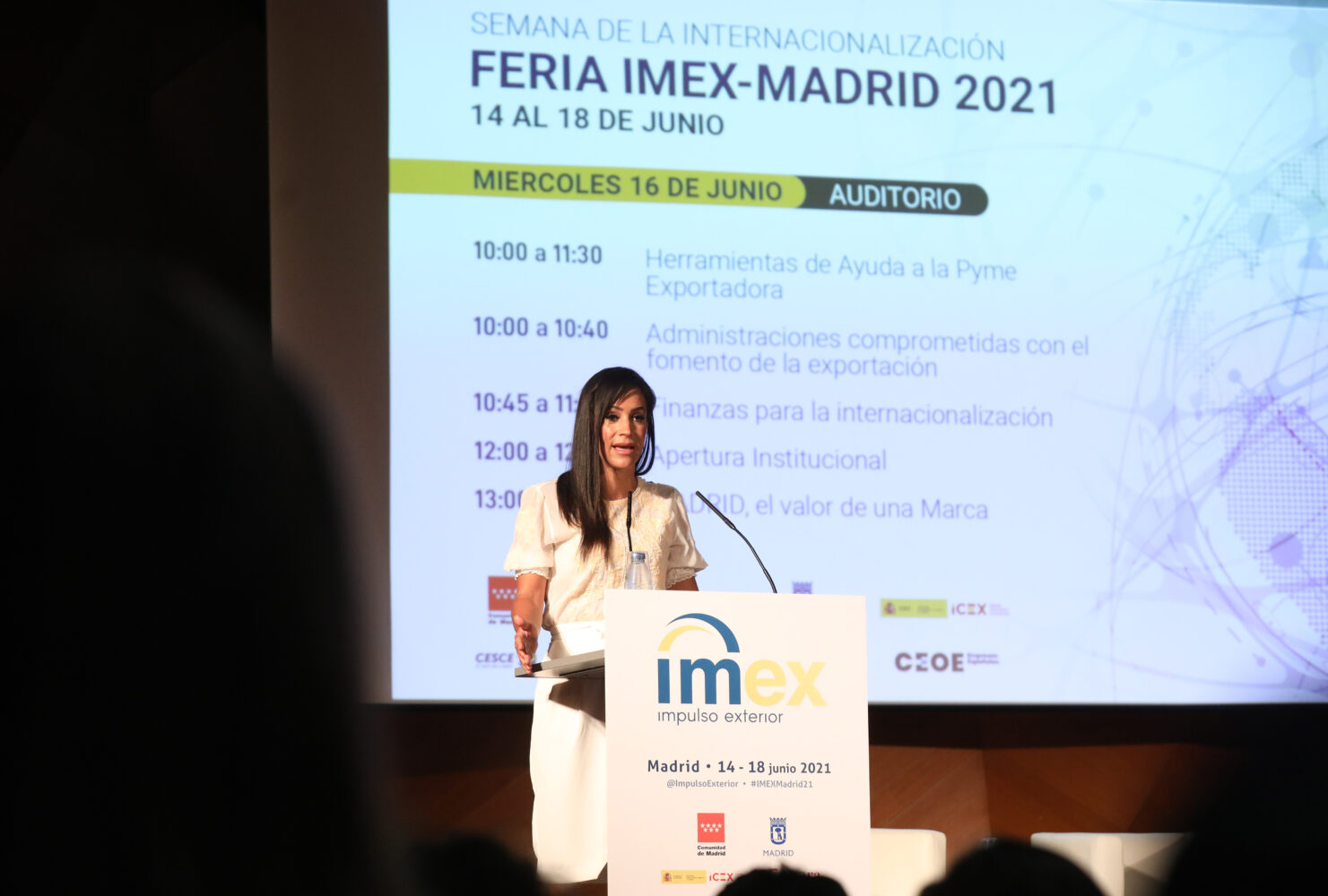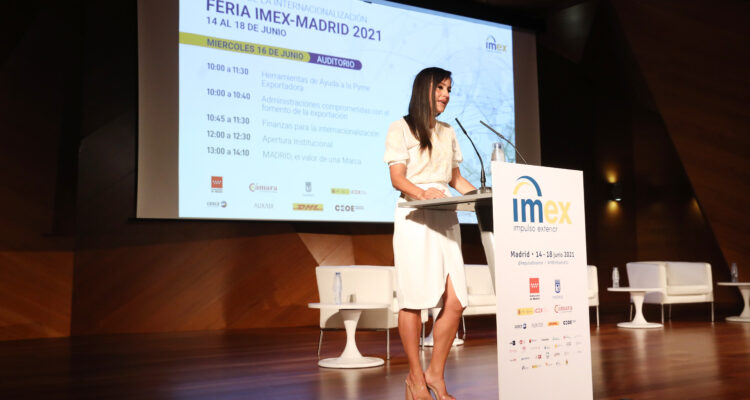 La Galería de Cristal del palacio de Cibeles ha acogido hoy la Feria IMEX Madrid 2021, una importante cita de negocio internacional y comercio con presencia de entidades públicas y privadas que tiene por objetivo ofrecer servicios de apoyo y herramientas a la internacionalización de las empresas españolas para mejorar su competitividad. La vicealcaldesa de Madrid, Begoña Villacís, ha inaugurado hoy este encuentro que en la presente edición se ha configurado de manera semipresencial.