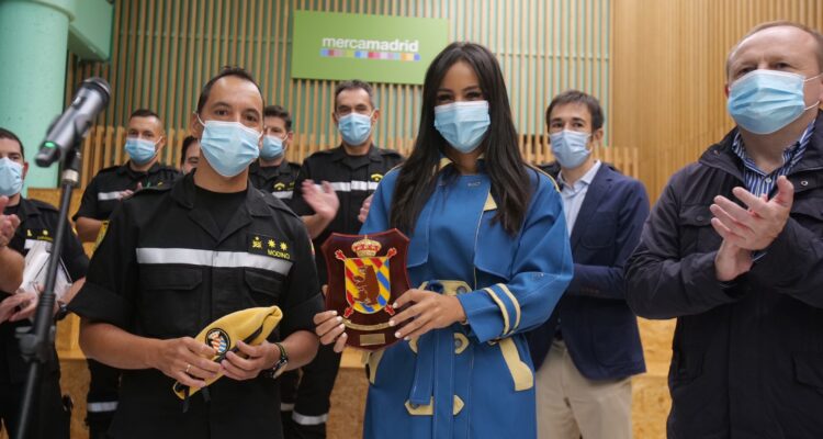La vicealcaldesa de Madrid, Begoña Villacís, junto al delegado de Economía, Innovación y Empleo, Miguel Ángel Redondo, y el presidente de Mercamadrid y concejal delegado de Innovación y Emprendimiento, Ángel Niño, ha participado en la entrega de una placa de agradecimiento a la Unidad Militar de Emergencia (UME) que ha recogido el teniente coronel del Batallón BIEM-I, Alberto Modino, como reconocimiento a la labor realizada por el cuerpo en momentos críticos como la pandemia de la COVID-19 o el temporal Filomena.