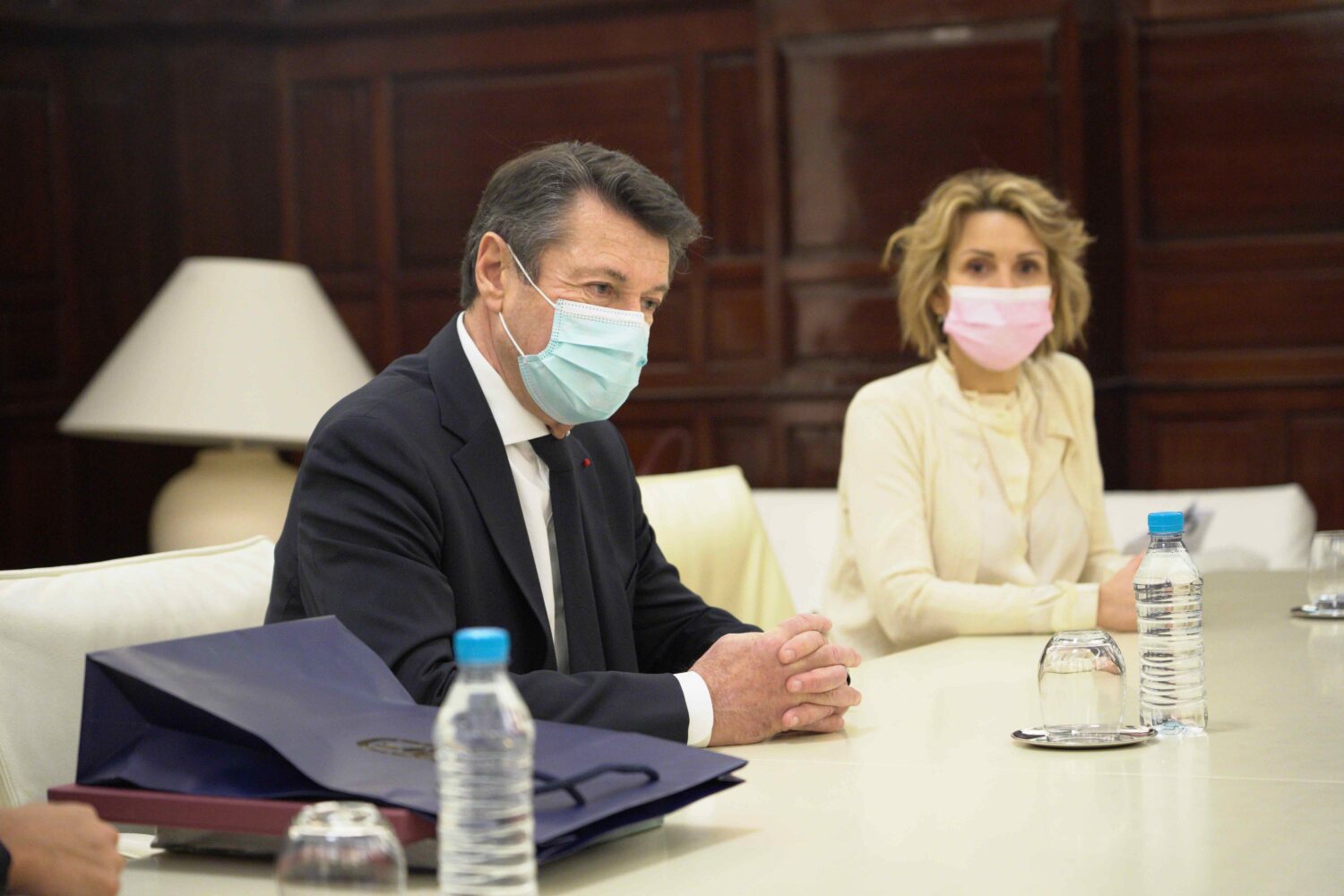 La vicealcaldesa de Madrid, Begoña Villacís, ha recibido este sábado en el Palacio de Cibeles al alcalde de la ciudad francesa de Niza, Christian Estrosi, encuentro que se ha producido durante la visita del regidor francés a la capital.